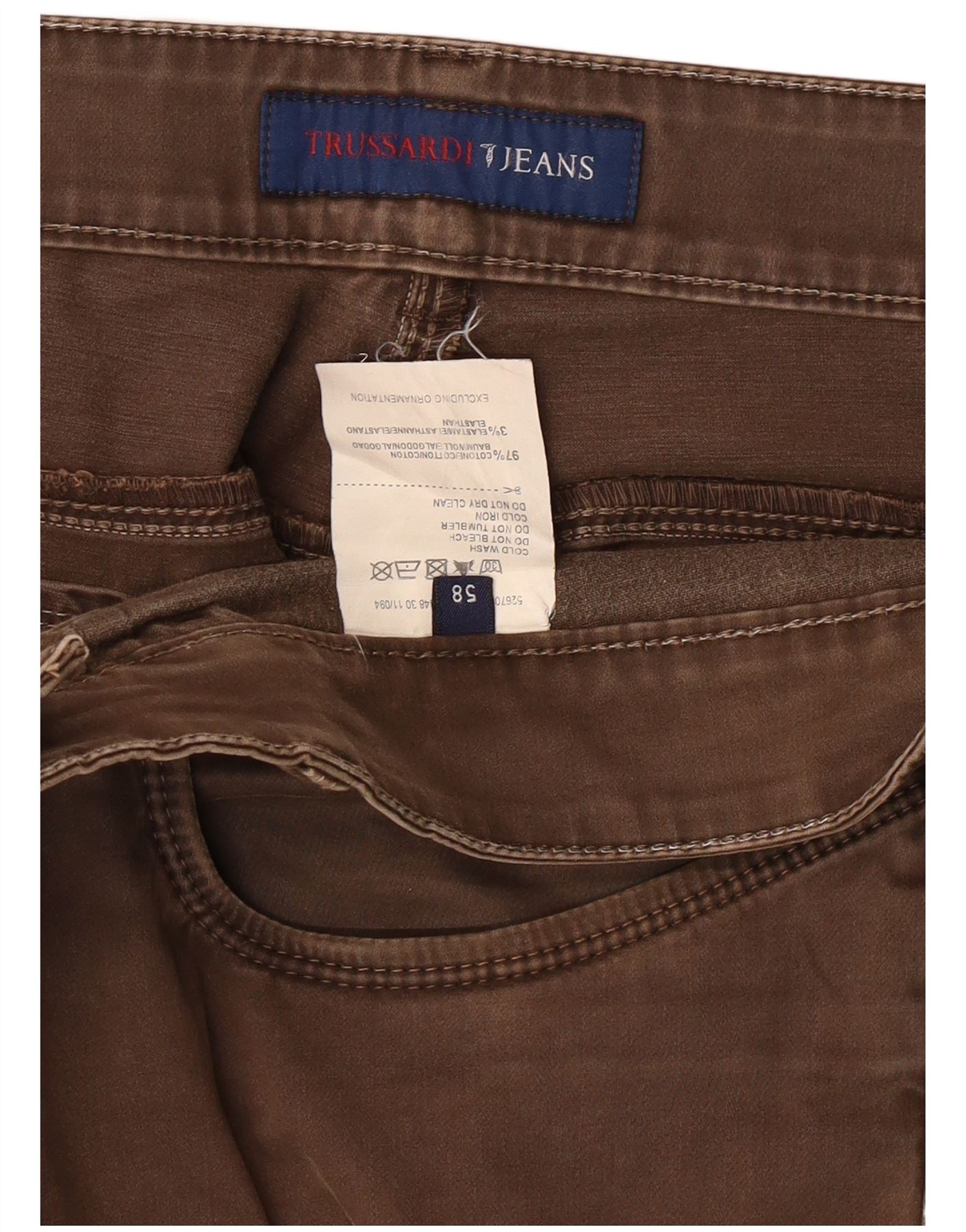TRUSSARDI Calça masculina reta casual IT 58 3XL W40 L36 algodão marrom