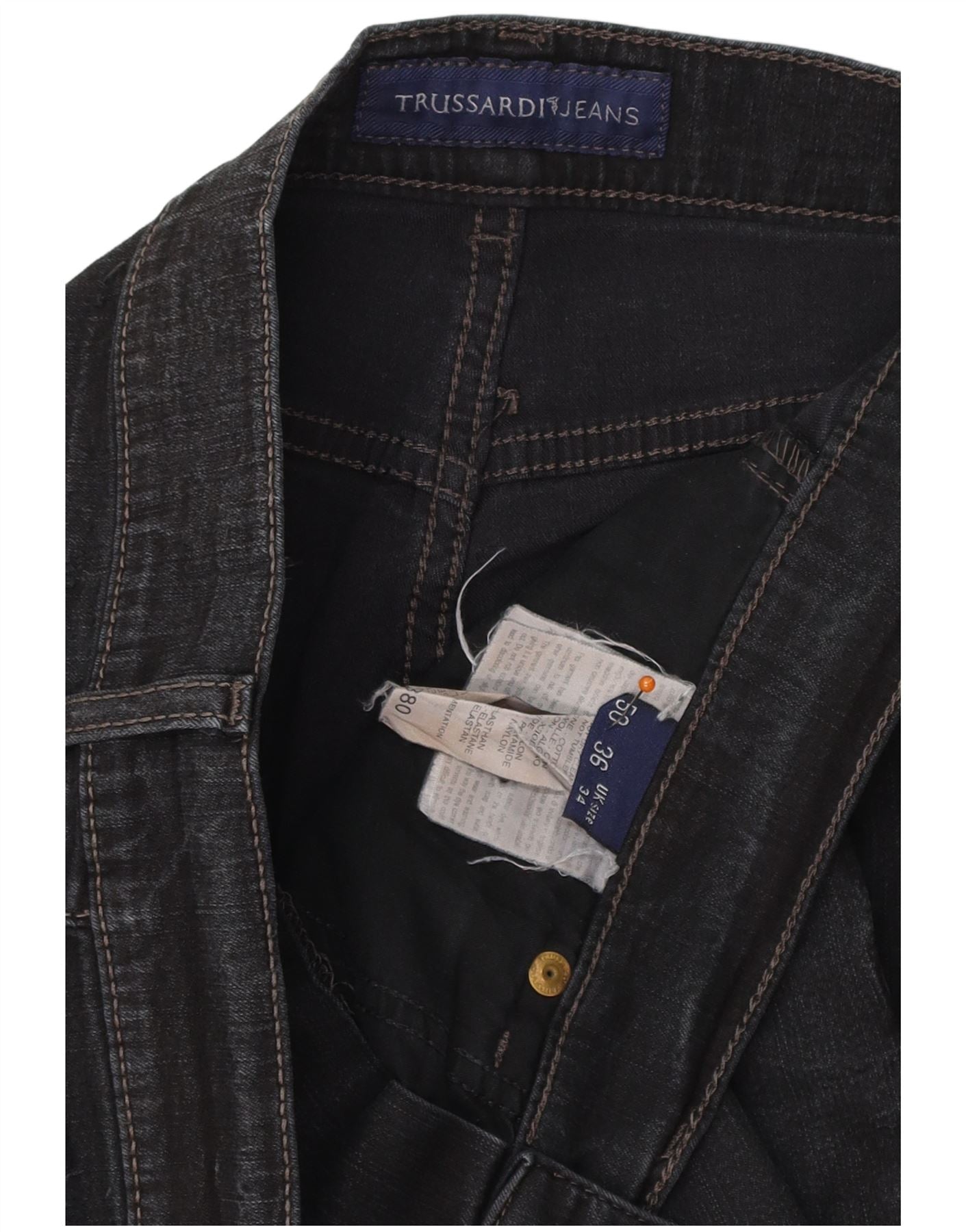 Jeans retos masculinos TRUSSARDI W34 L32 algodão azul marinho
