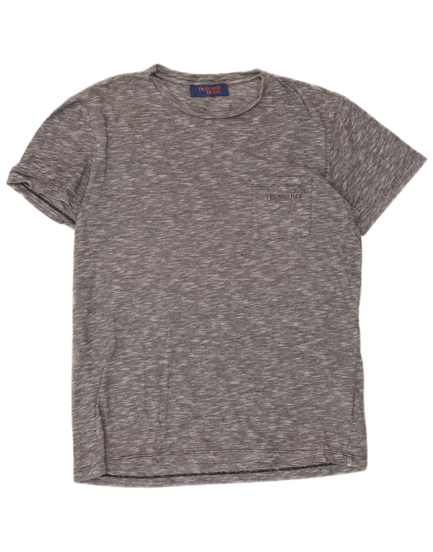 Camiseta masculina TRUSSARDI pequena algodão manchado cinza