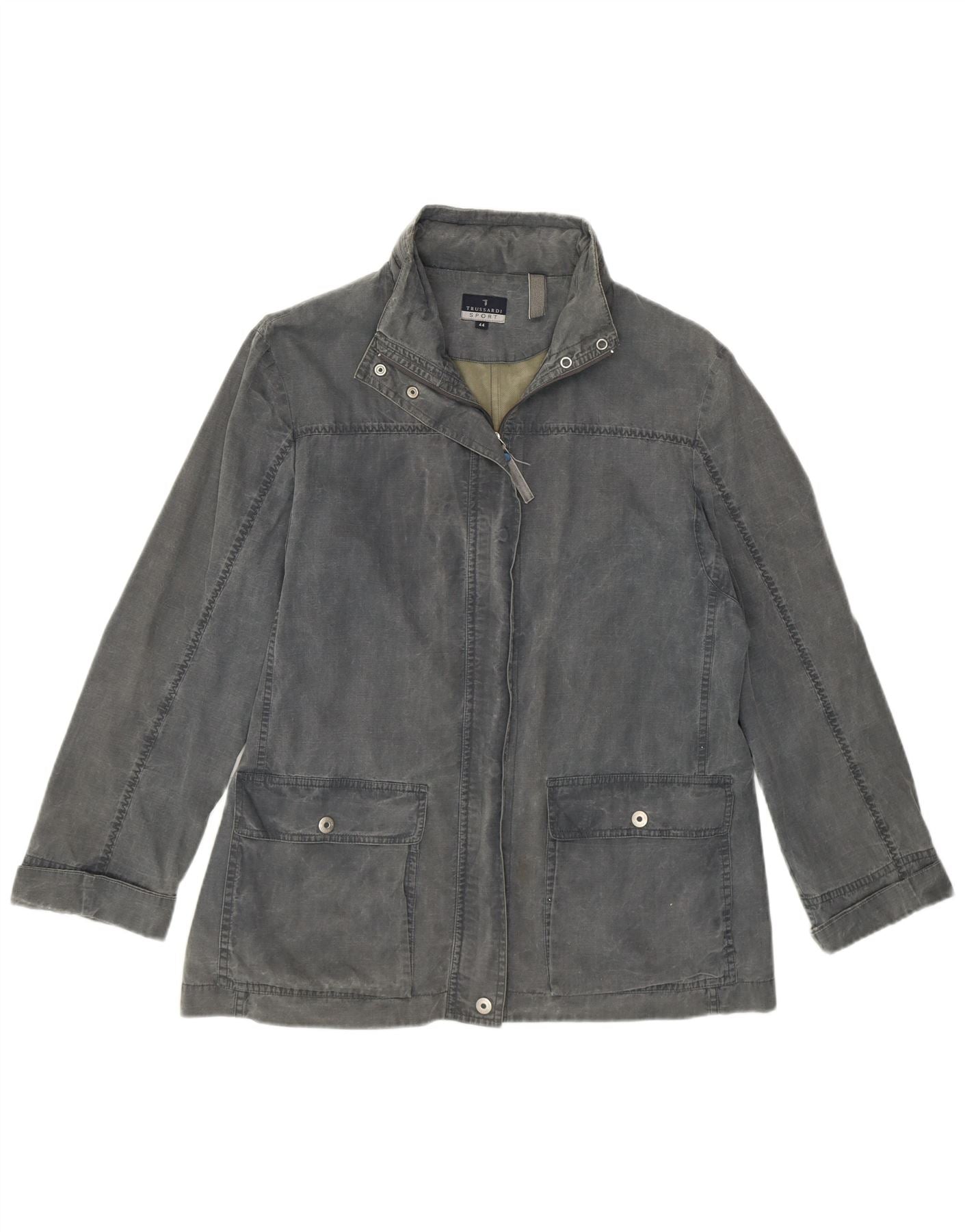 Jaqueta utilitária feminina com capuz TRUSSARDI IT 44 algodão cinza médio