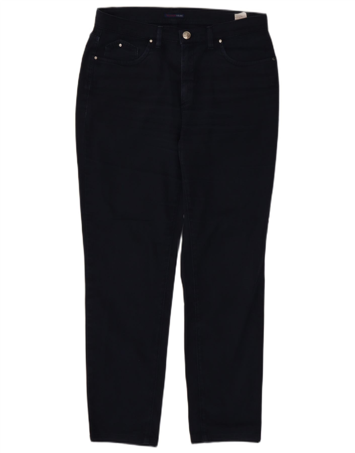 Calça casual feminina TRUSSARDI cônica W31 L29 algodão azul marinho