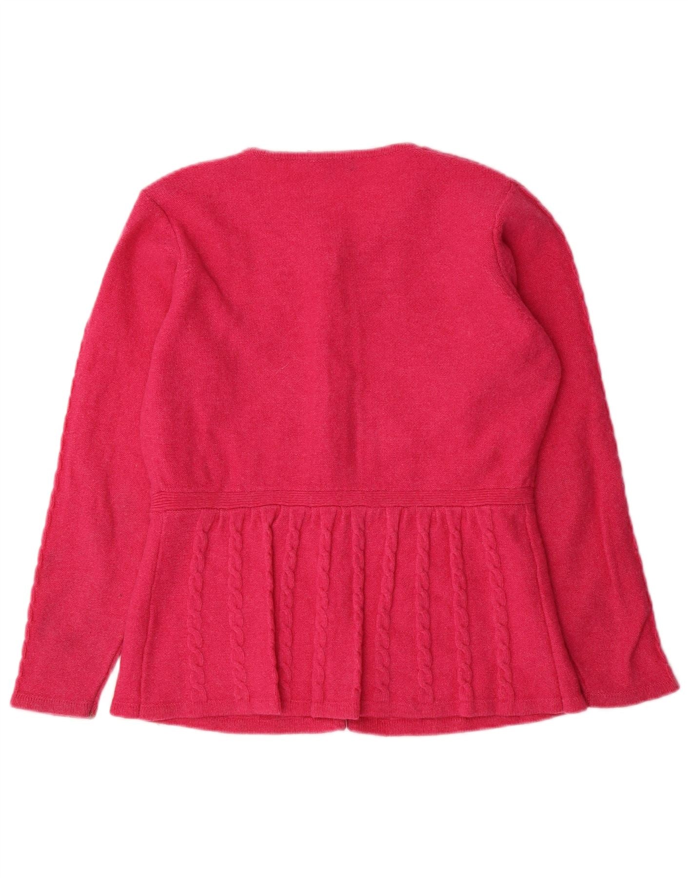 Suéter cardigã feminino TULCHAN UK 16 grande lã de cordeiro rosa