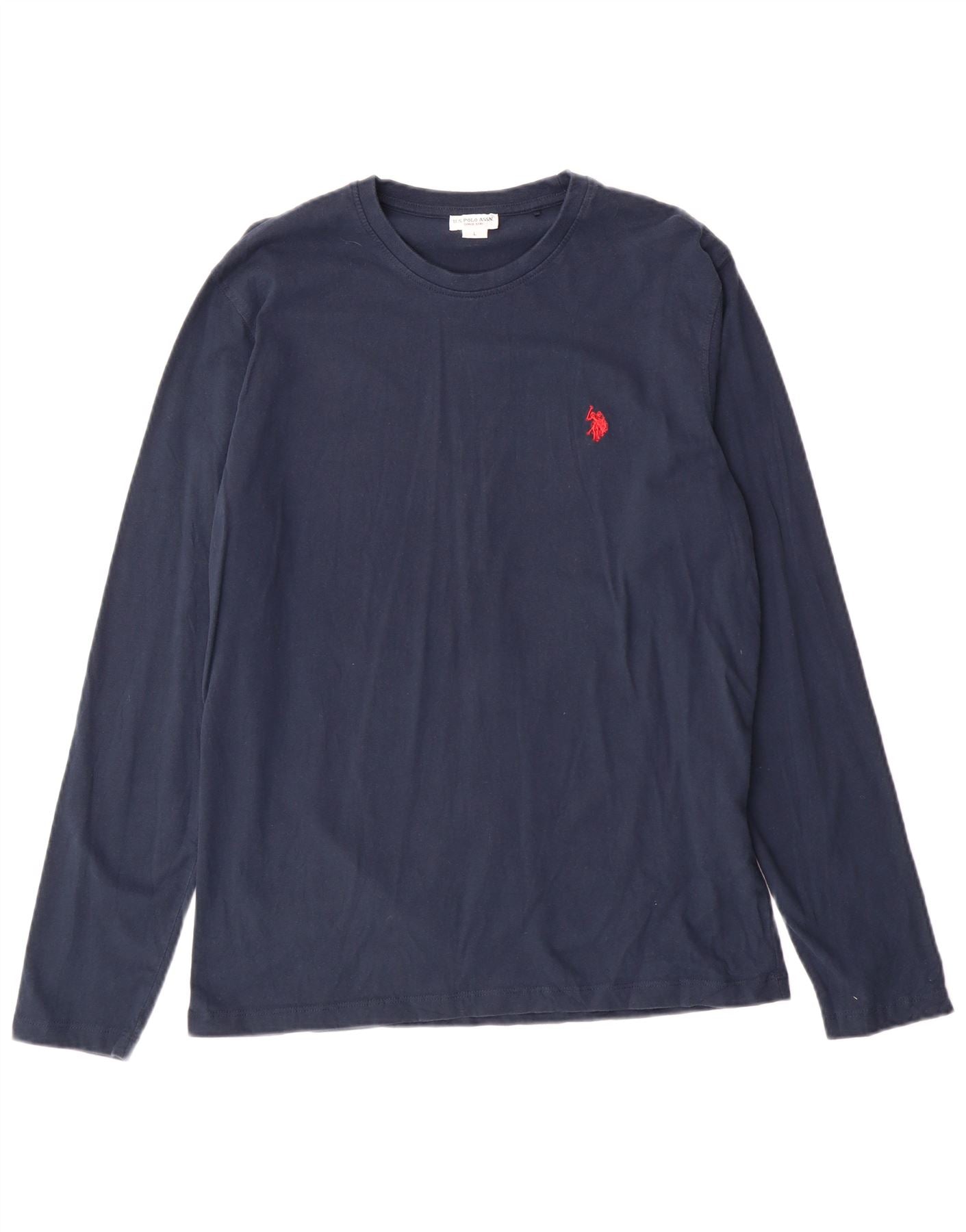 US Polo Assn. Top feminino manga comprida UK 16 grande algodão azul marinho