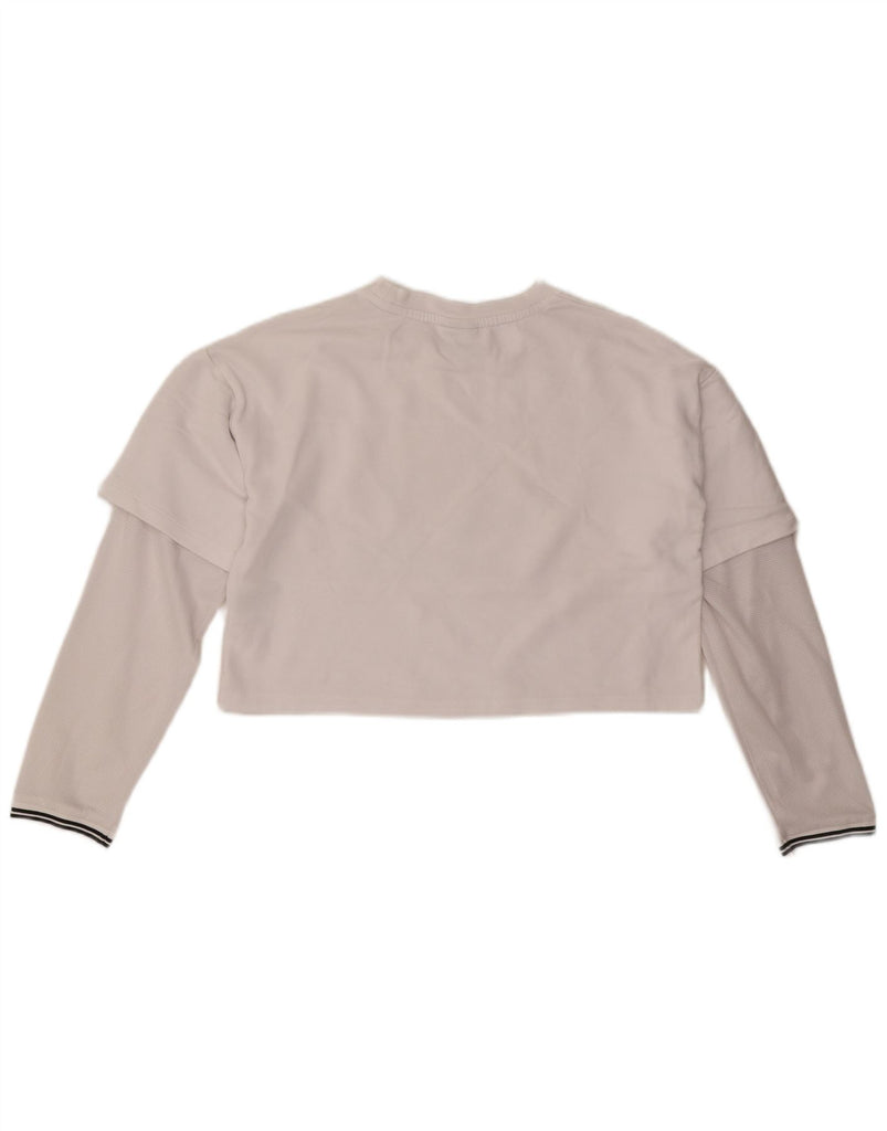 UMBRO Womens Crop Graphic Top Long Sleeve UK 14 Medium Off White Cotton