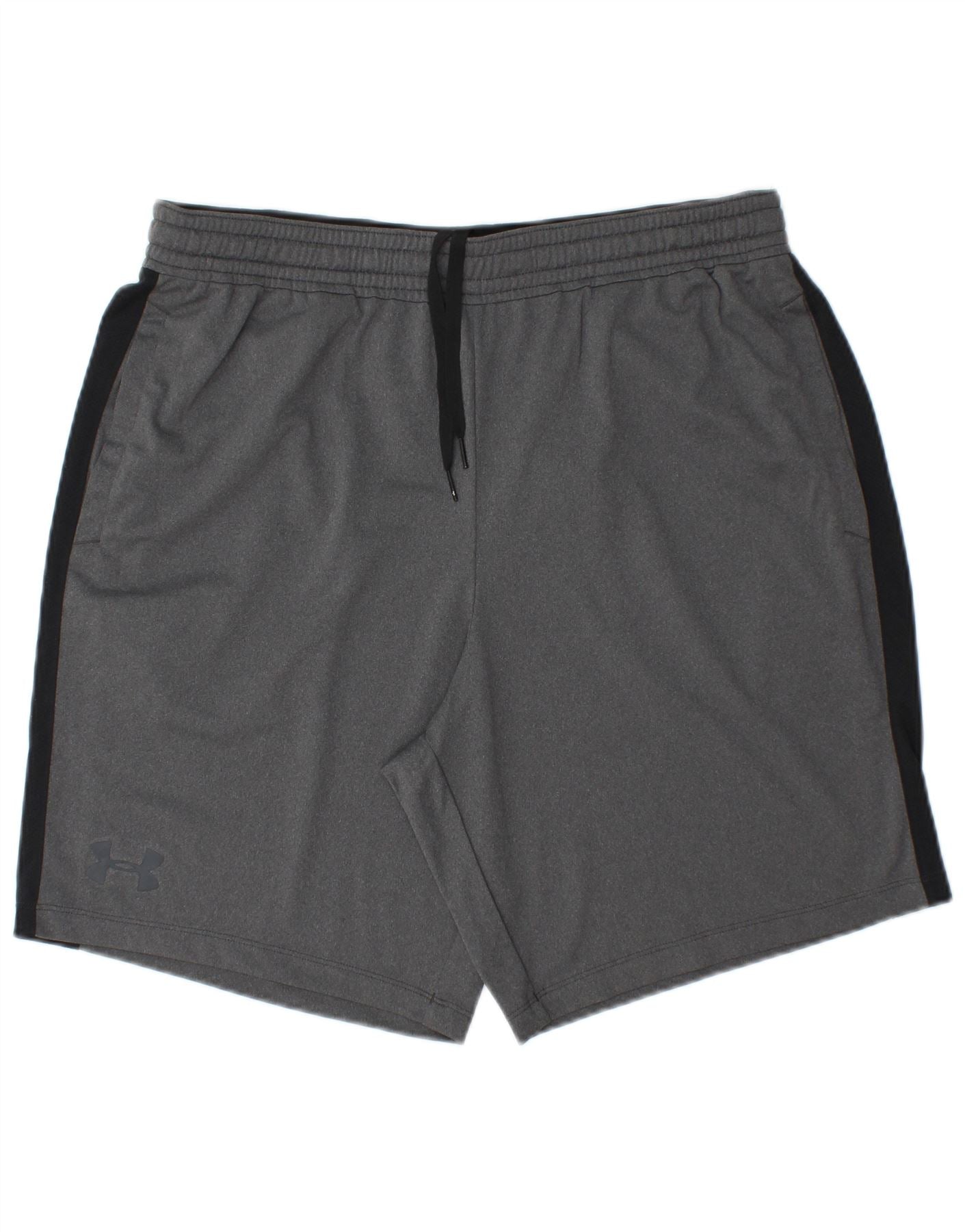 Shorts esportivos masculinos UNDER ARMOUR com grande bloco colorido cinza de poliéster