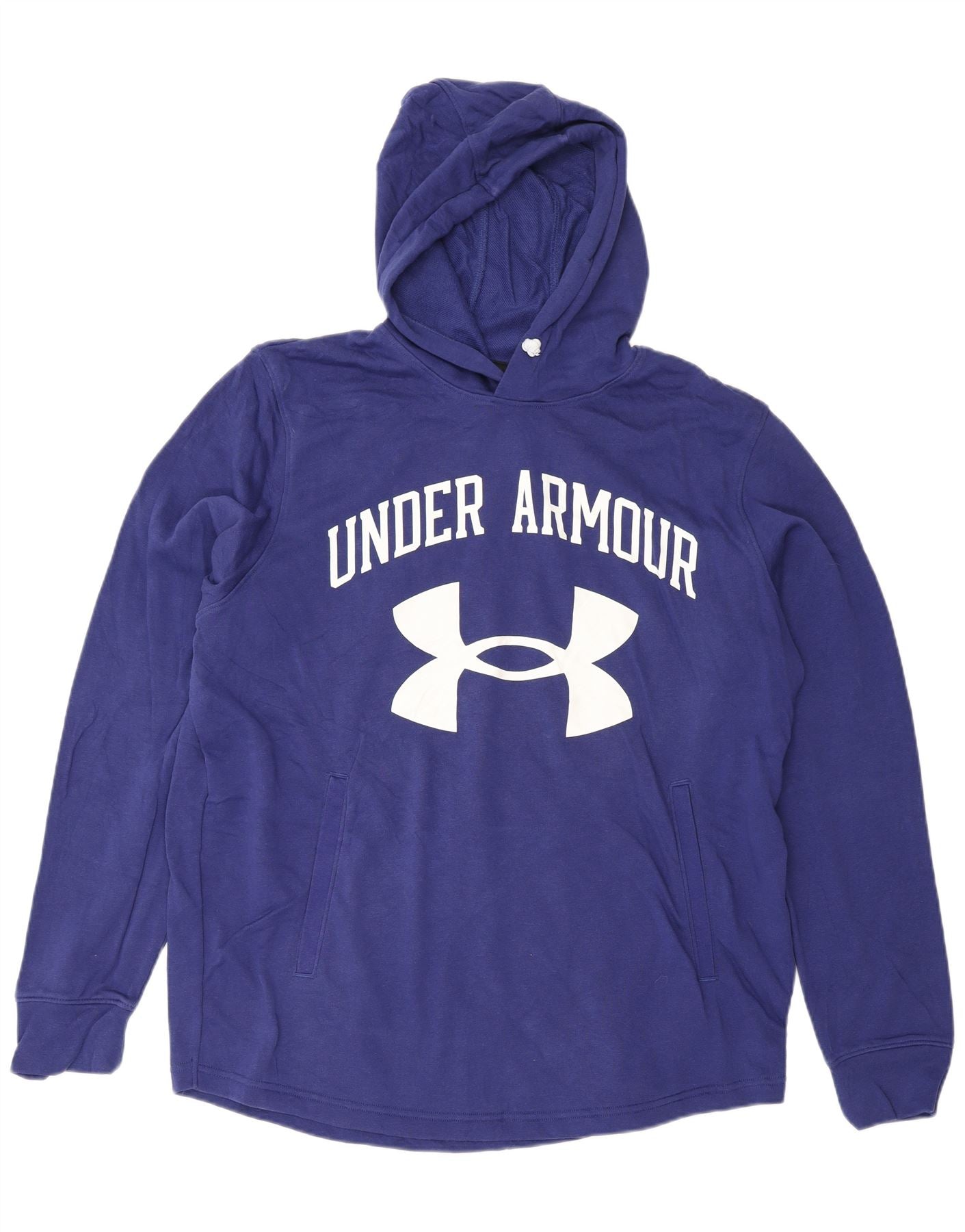 - Descrição da IA: Este moletom com capuz masculino Under Armour é feito de tecido jersey azul macio. Possui um design confortável com capuz e mangas compridas. O estilo pulôver oferece facilidade de uso. Um ajuste relaxado e solto garante o máximo conforto. A frente apresenta um logotipo gráfico Under Armour branco proeminente. Bolsos frontais práticos acrescentam funcionalidade. Esta peça combina o estilo atlético com o conforto do dia a dia.