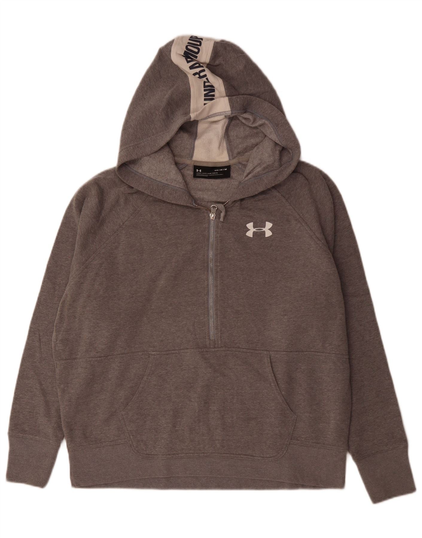 UNDER ARMOUR Suéter masculino com capuz e gola com zíper gráfico bloco colorido cinza médio