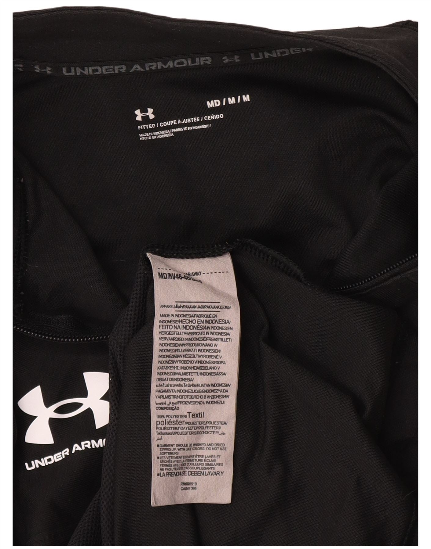 - Descrição da IA: Esta jaqueta masculina Under Armour é confeccionada em lã de poliéster preta. O decote com gola e o zíper completo oferecem versatilidade. Mangas compridas e corte justo criam uma silhueta elegante. Possui bolsos práticos e um logotipo sutil da marca. Esta jaqueta, fabricada na Indonésia, equilibra conforto com uma estética moderna.