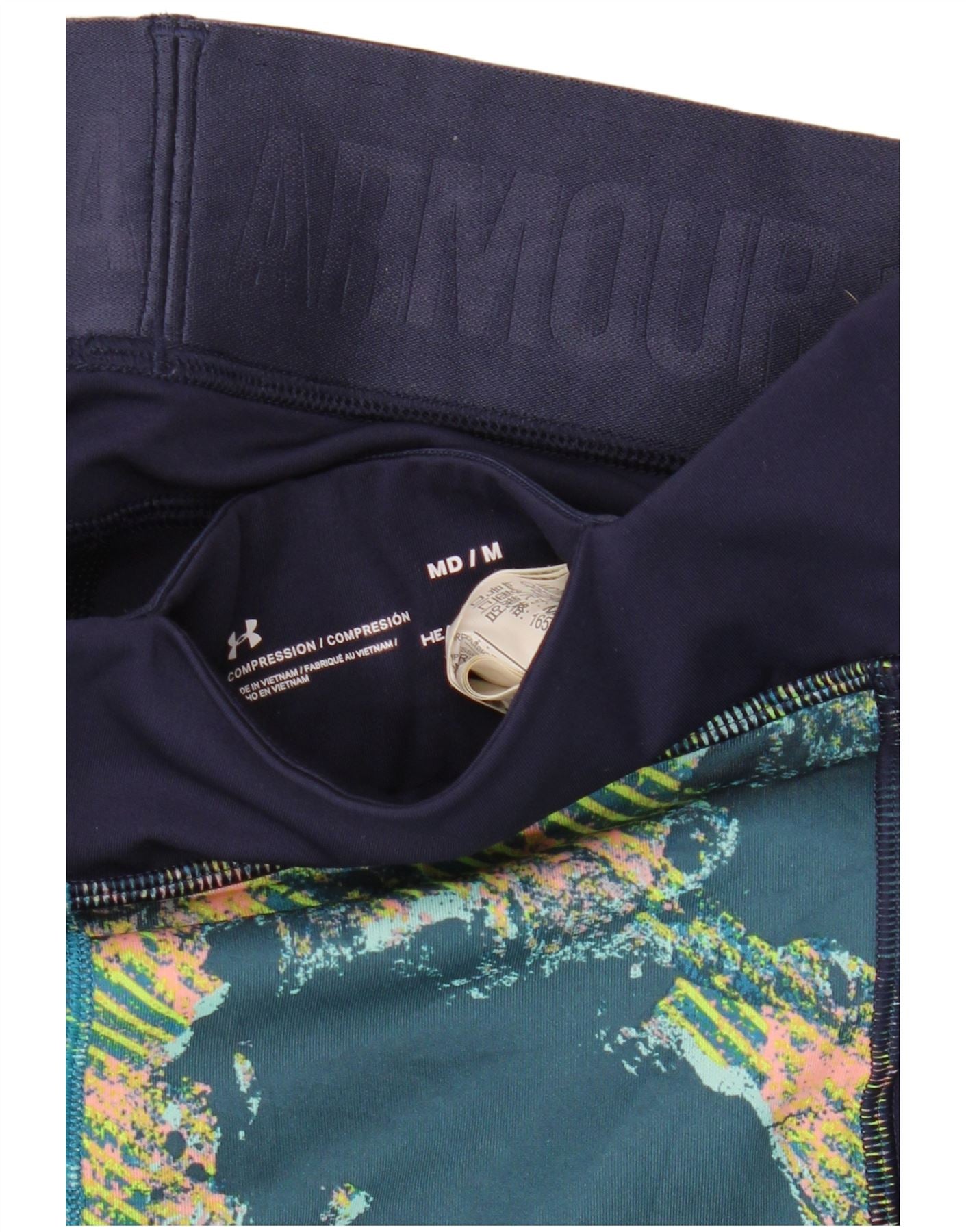 UNDER ARMOUR Womens Abstract Pattern Leggings UK 12 Medium Navy Blue