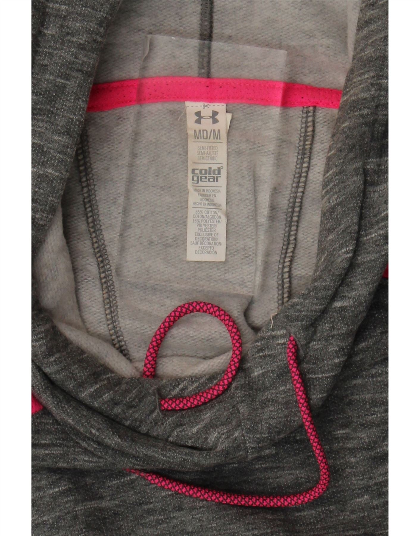 - Descrição da IA: Este suéter com capuz feminino Under Armour é confeccionado em um confortável tecido cinza mesclado, com algodão, poliéster, rayon e elastano para um ajuste atlético. Possui decote com capuz com cordões rosa brilhante e mangas compridas. O design do pulôver inclui práticos bolsos frontais. Impressionantes detalhes em rosa adornam os ombros, complementando o pequeno logotipo da Under Armour na bainha. Este jumper de ajuste regular oferece conforto e estilo.