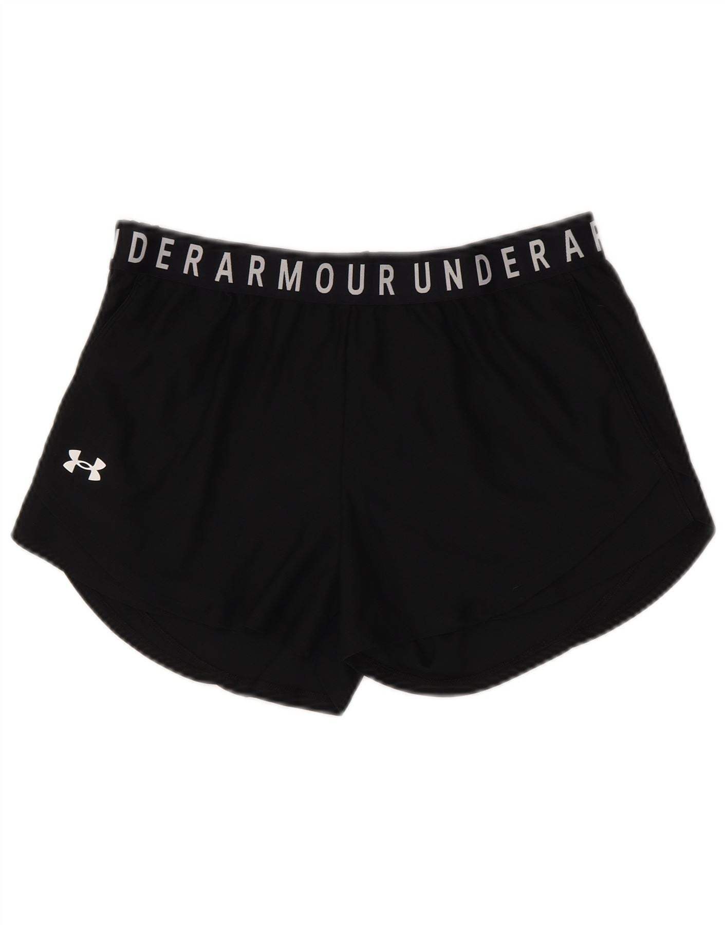 Shorts esportivos femininos Under ARMOUR Heat Gear Graphic UK 14 grandes pretos