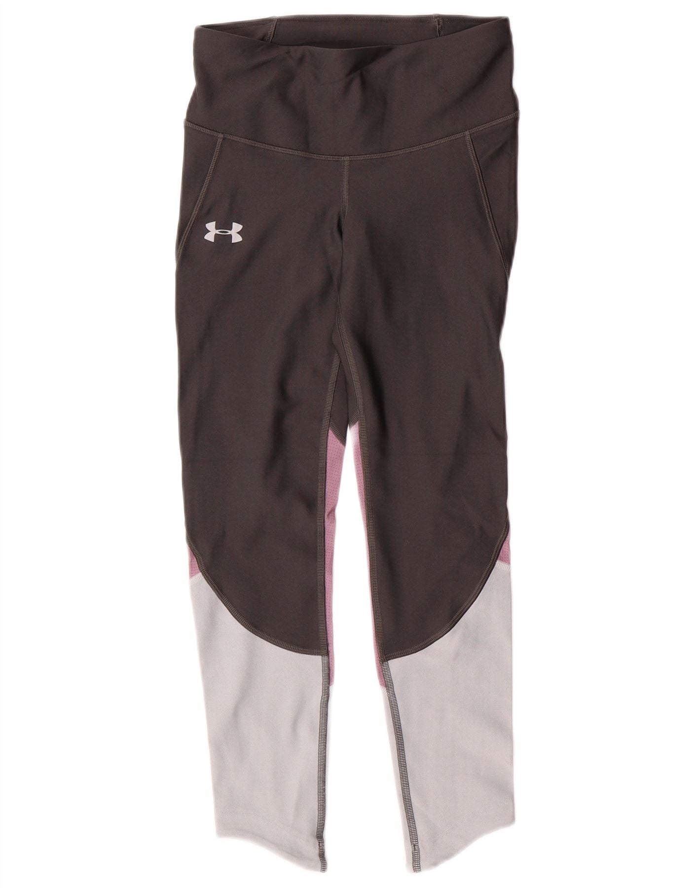 UNDER ARMOUR Womens Heat Gear Leggings UK 8 Small Grey Colourblock