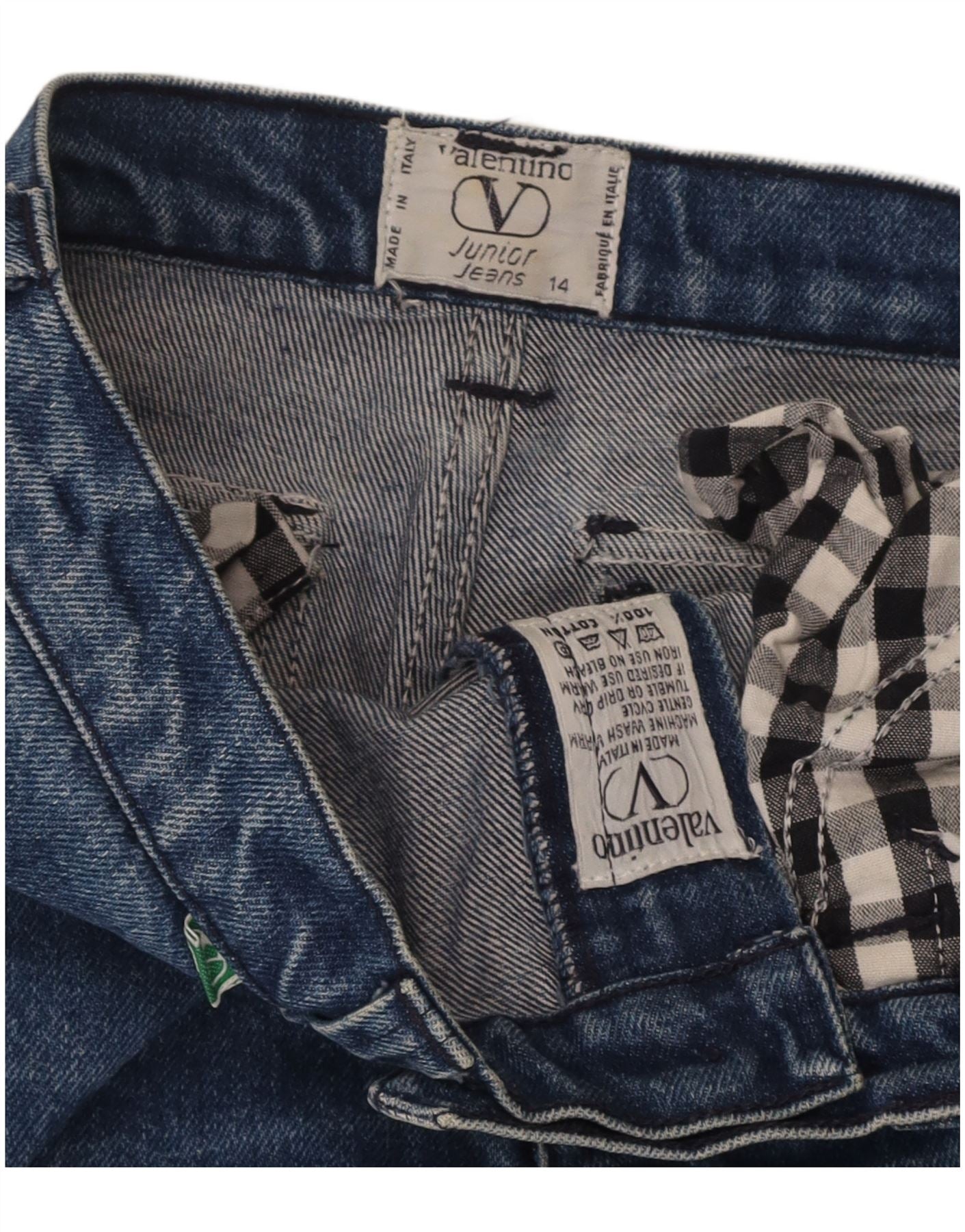 VALENTINO Meninas Jeans Cônicos de Cintura Alta 13-14 Anos W26 L30 Azul Algodão