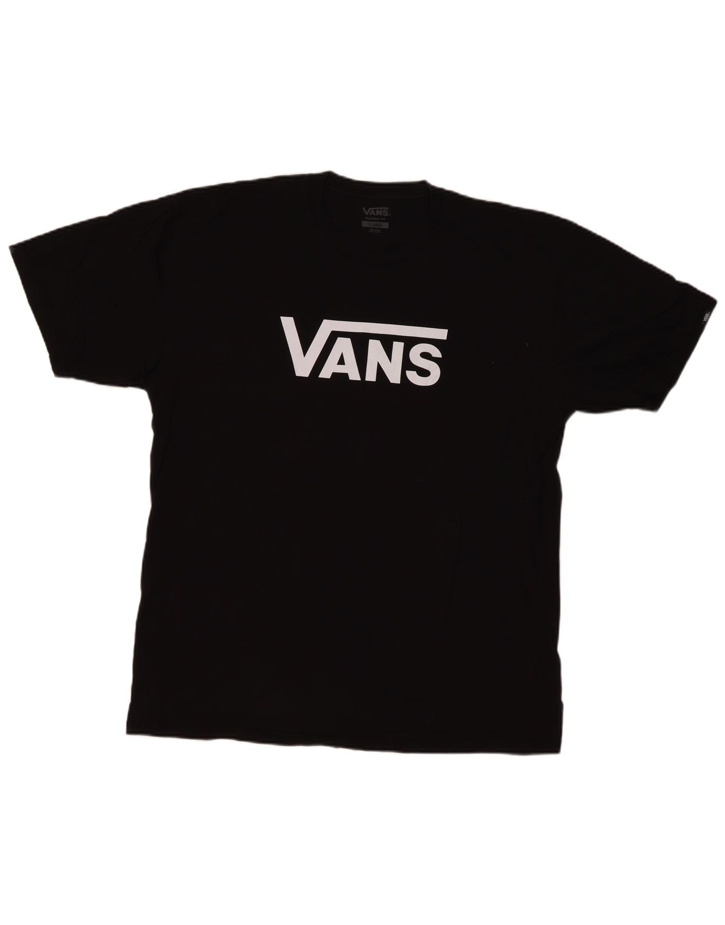 - Descrição da IA: Esta camiseta gráfica masculina da Vans é confeccionada em jersey de algodão preto macio. Oferece uma sensação confortável e leve com um ajuste clássico. O decote redondo e as mangas curtas proporcionam uma silhueta atemporal. Um logotipo Vans proeminente é exibido na frente, adicionando um toque exclusivo. Este pulôver foi projetado para uso diário, combinando estilo com facilidade.