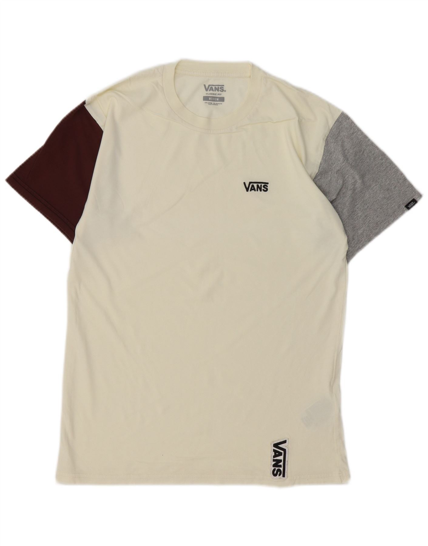 Camiseta masculina VANS Classic Fit Top médio off white algodão colorblock