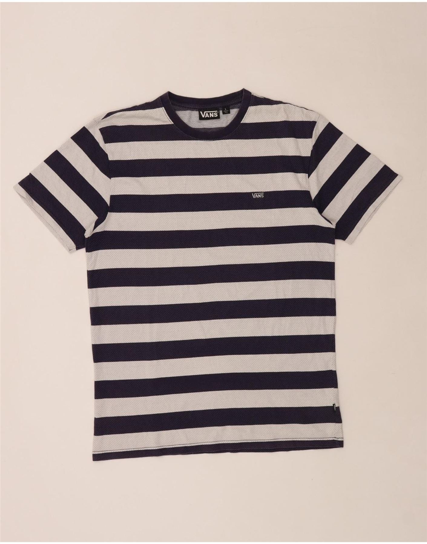 Camiseta masculina VANS grande algodão listrado azul marinho