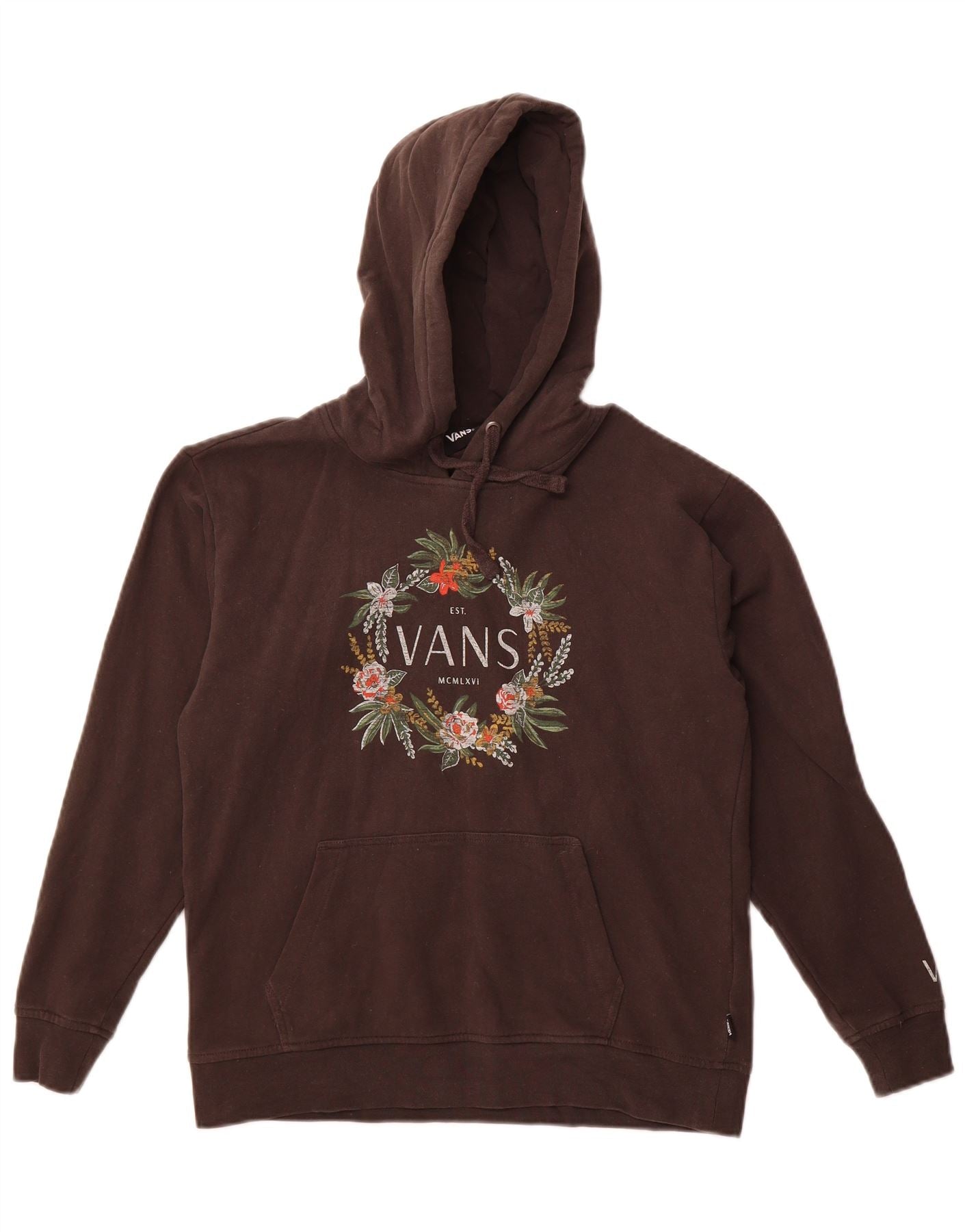 Vans Womens Graphic Hoodie Jumper UK 10 Pequeno Algodão Marrom