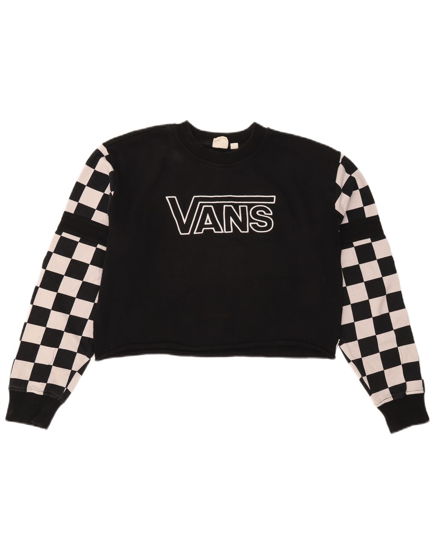 VANS Womens Oversized Crop Sweatshirt Jumper UK 10 Pequeno Preto Geométrico