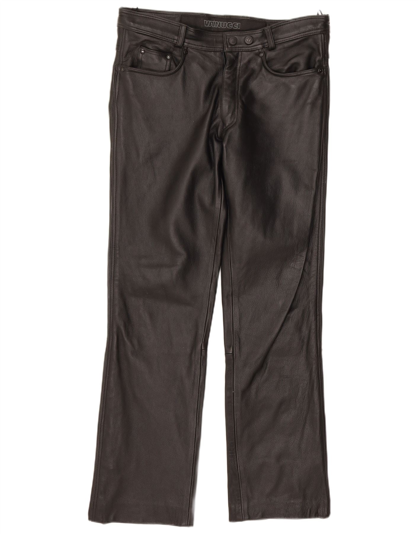 Calça casual reta masculina Vanucci IT 50 grande W34 L31 couro preto