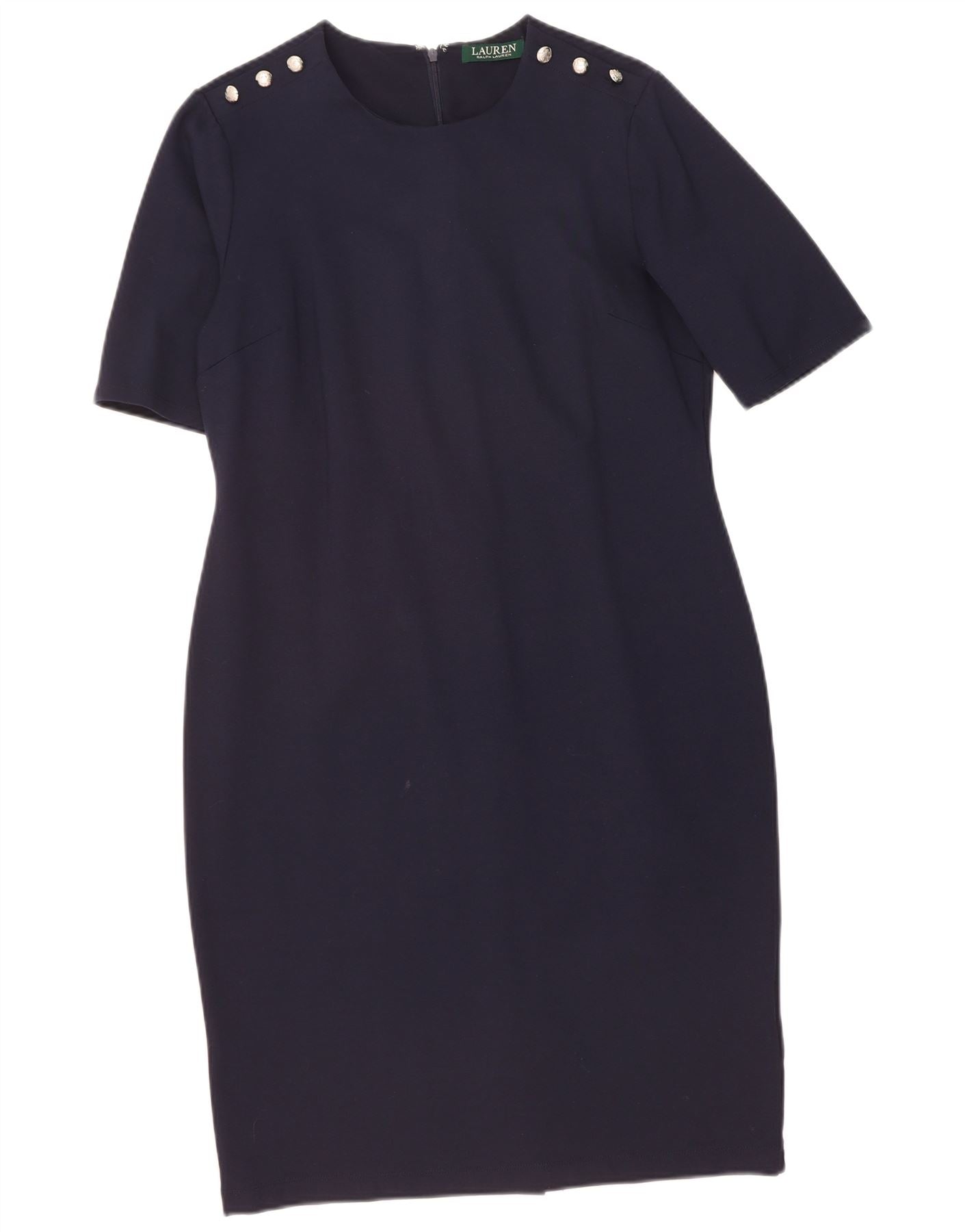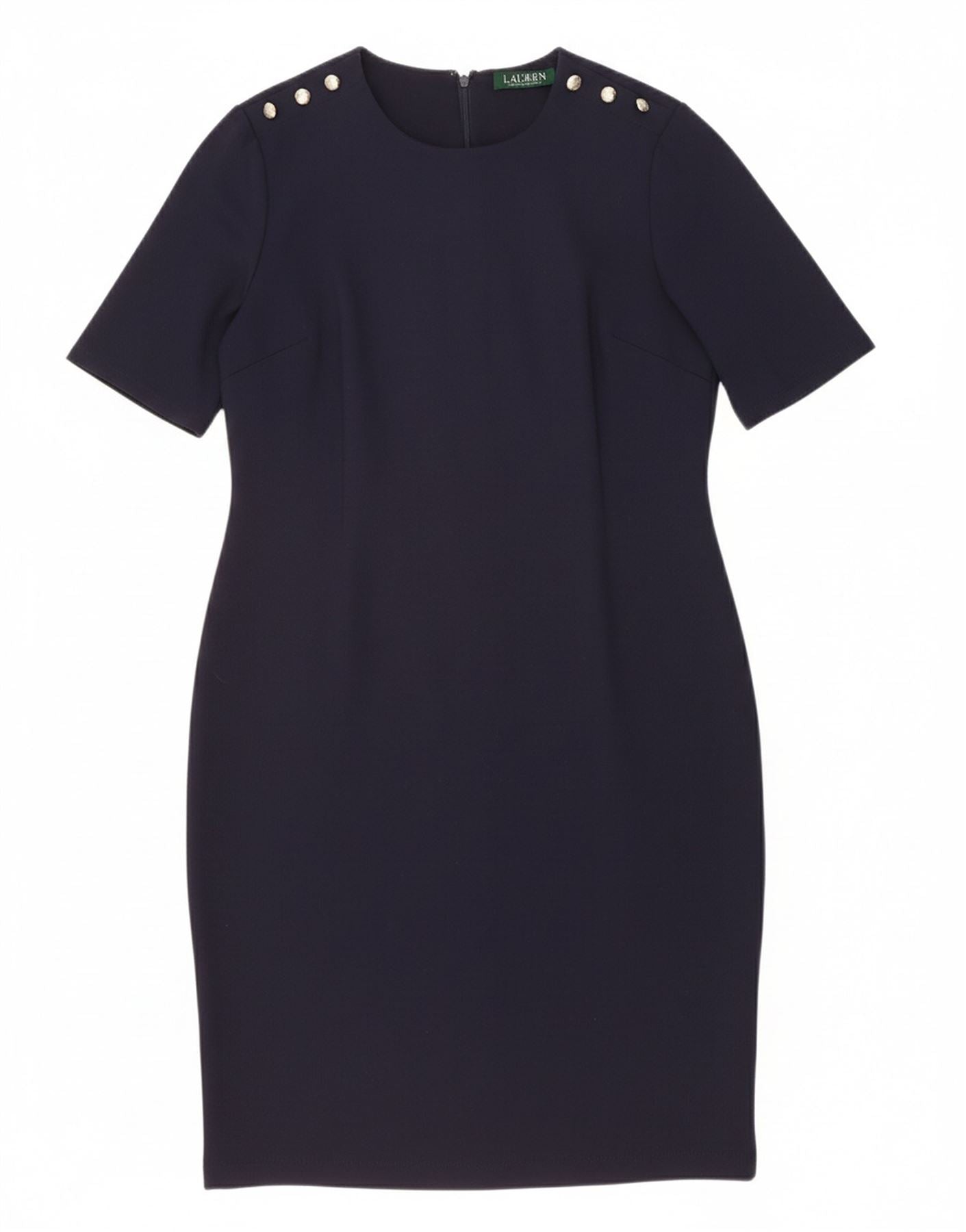 Vestido bainha feminino RALPH LAUREN Reino Unido 14 grande viscose azul marinho