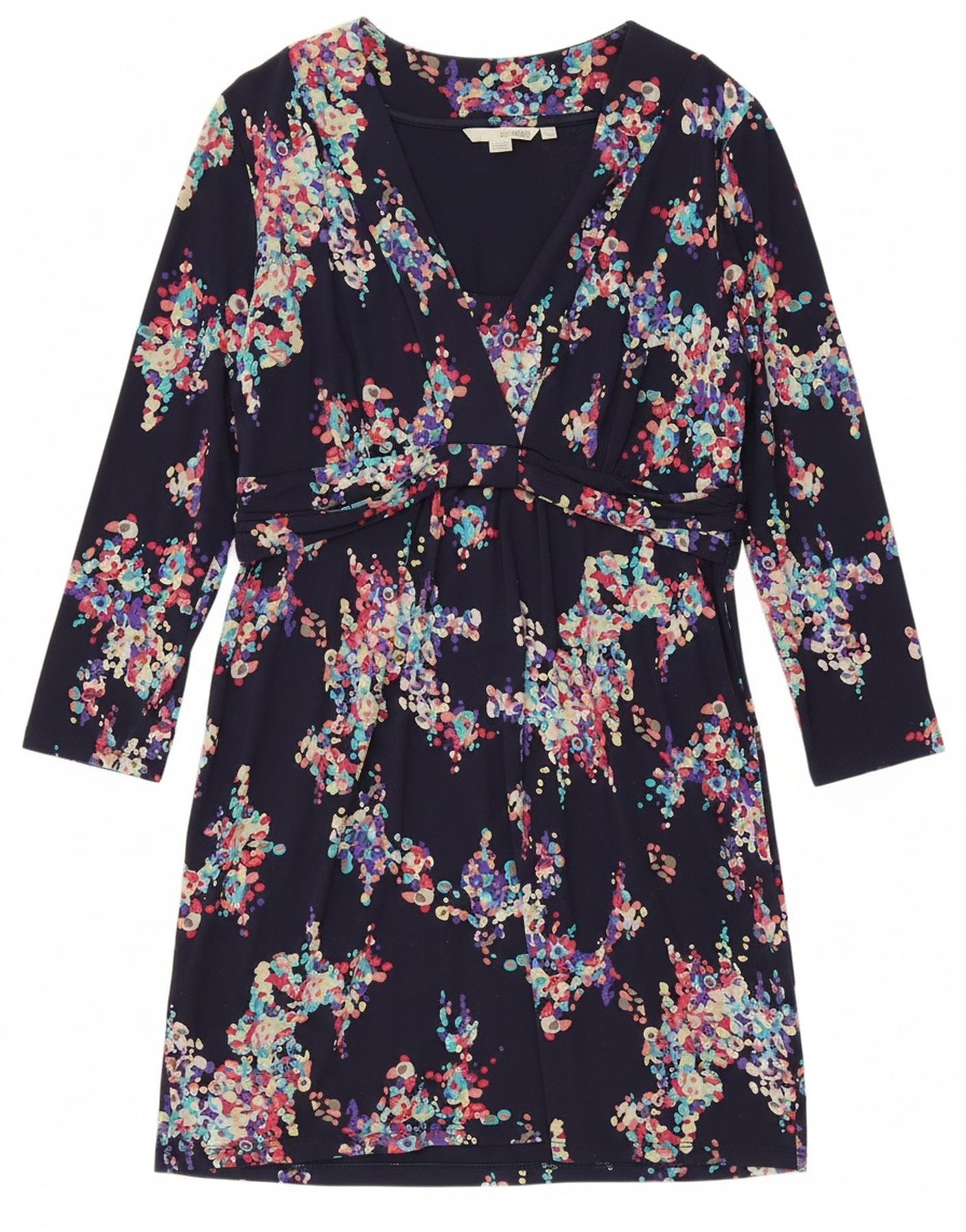 Vestido básico feminino BODEN pequeno manga 3/4 Reino Unido 14 grande azul marinho floral