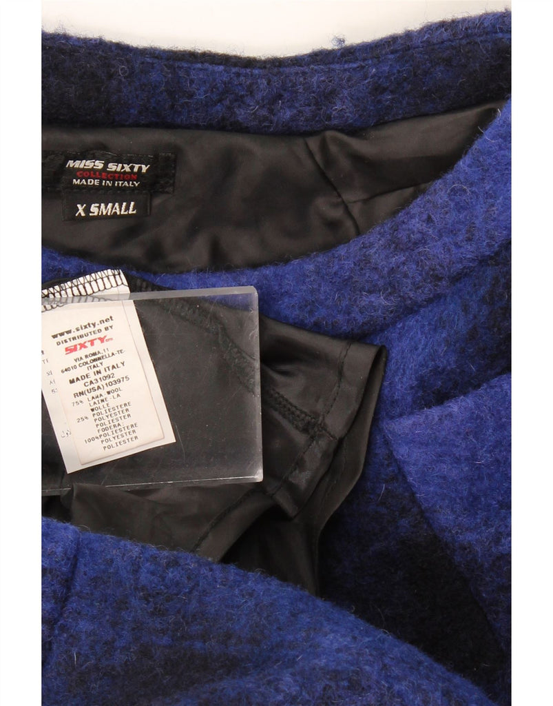 Vestido bodycon feminino MISS SIXTY manga 3/4 Reino Unido 6 XS azul xadrez lã