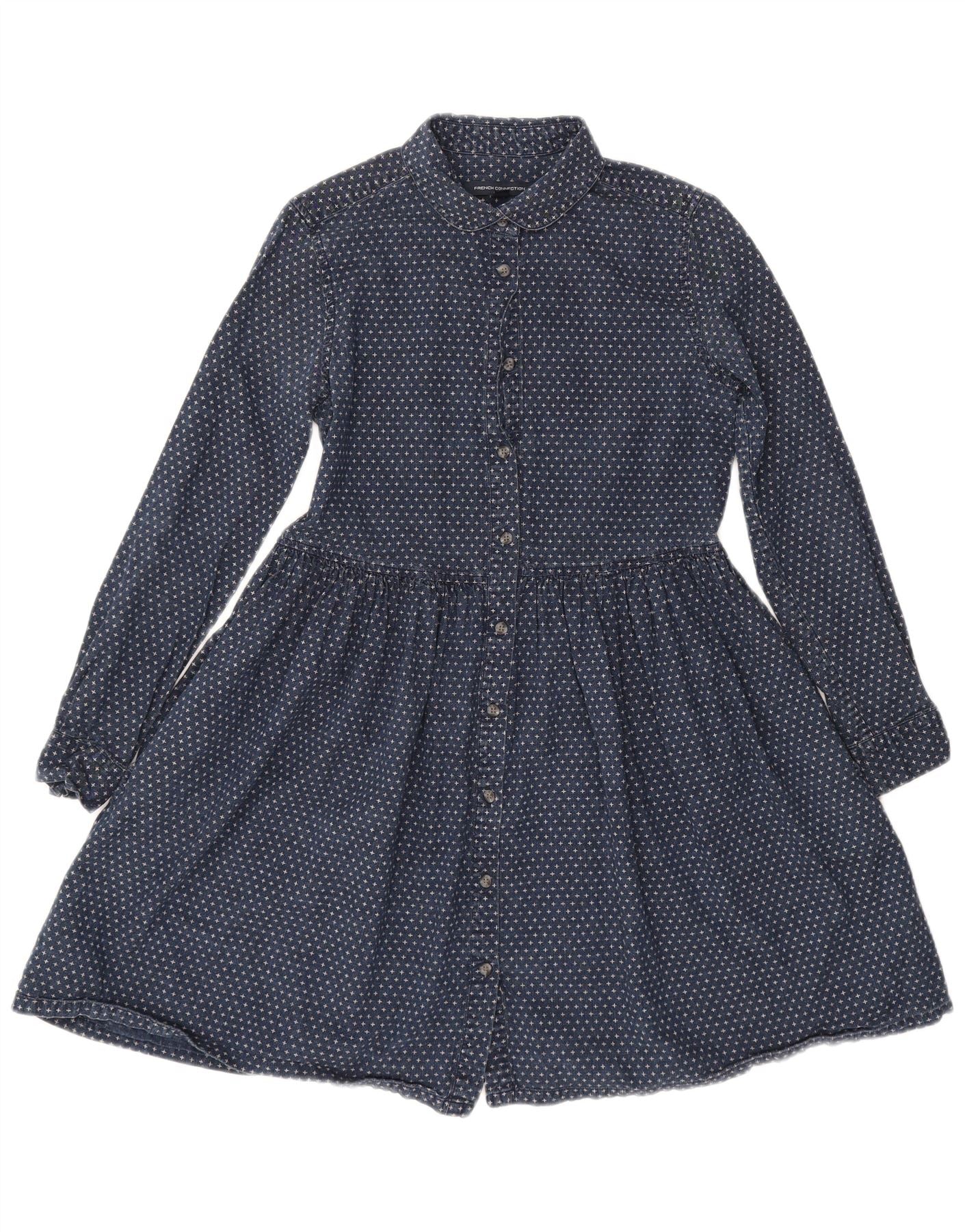 Vestido camisa feminino com padrão abstrato FRENCH CONNECTION Reino Unido 6 XS azul marinho