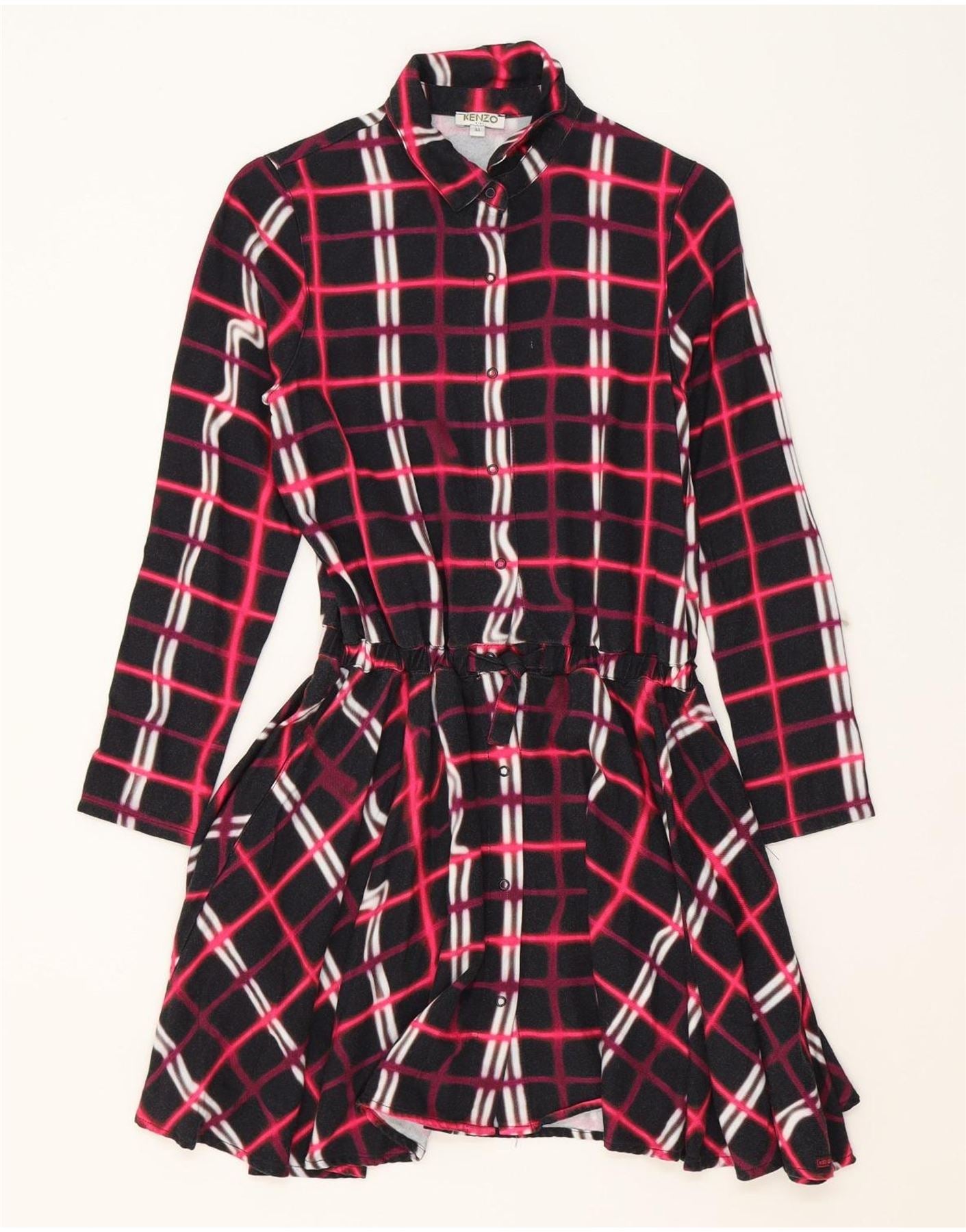 Vestido camisa feminino KENZO 13-14 anos preto xadrez viscose