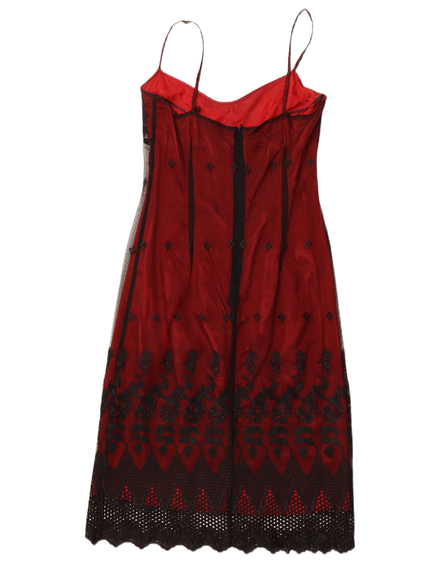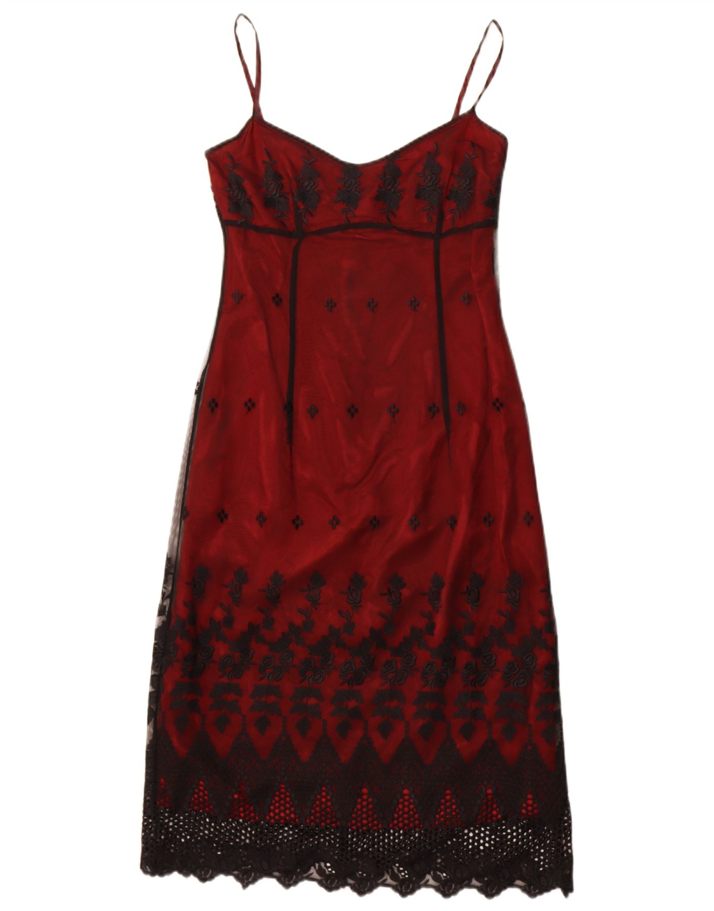 - Descrição da IA: Este vestido deslizante feminino River Island é feito de delicada renda vermelha, oferecendo uma textura luxuosa. Seu design sem mangas e ajuste fino criam uma silhueta elegante. O padrão floral adiciona charme feminino. Um fecho de correr discreto garante uma linha suave. É totalmente forrado para maior conforto e cobertura, realçando seu caimento elegante. Este estilo clássico é perfeito para ocasiões sofisticadas.