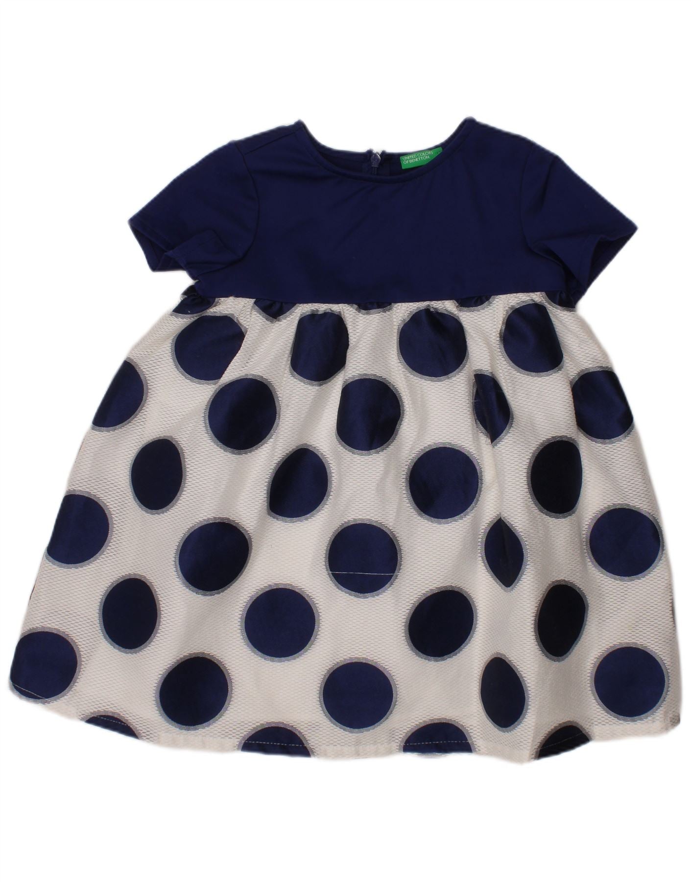 Vestido evasê BENETTON para meninas de 18 a 24 meses, azul marinho, bolinhas, algodão