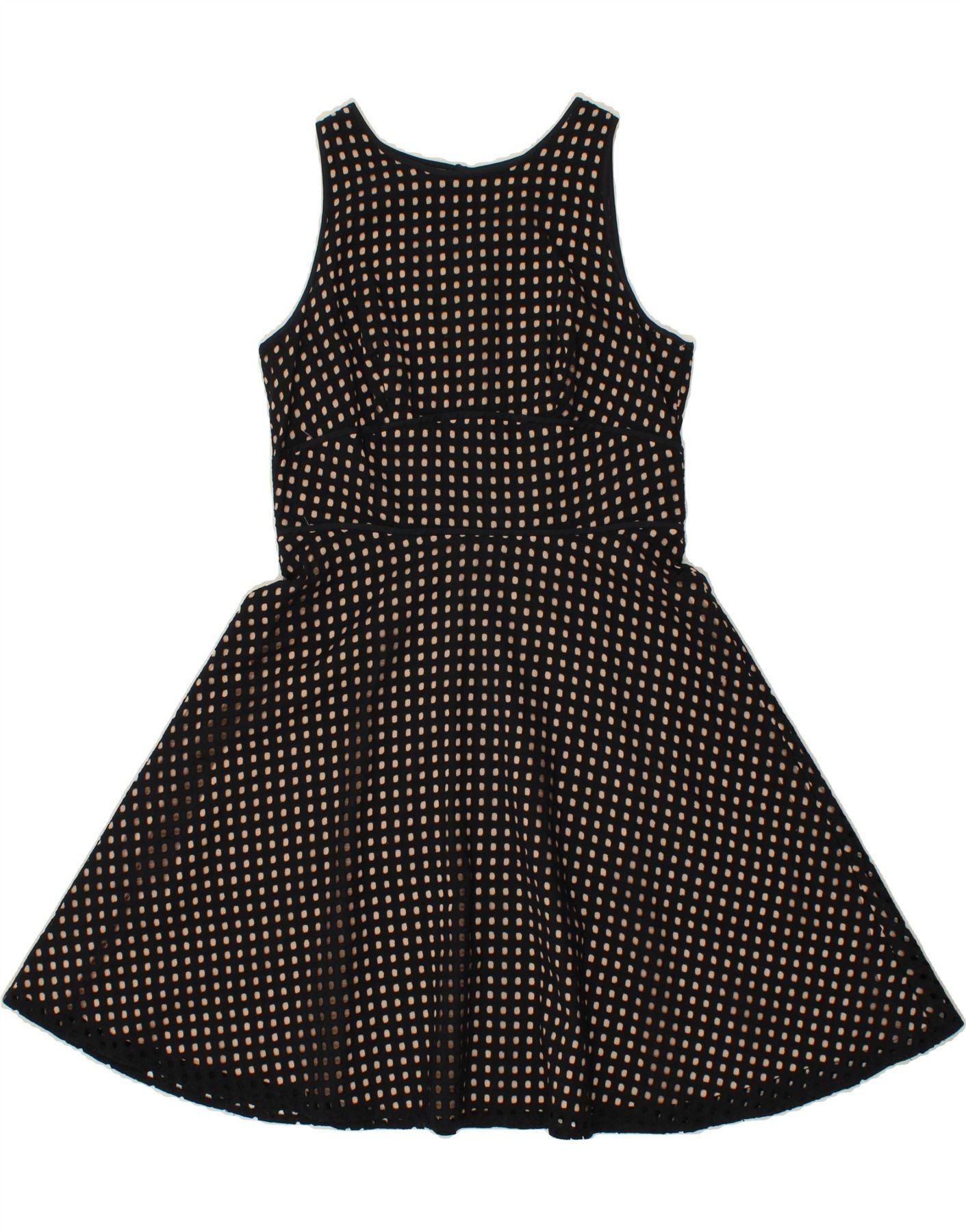 Vestido feminino Ann TAYLOR LOFT sem mangas evasê US 6 médio preto manchado
