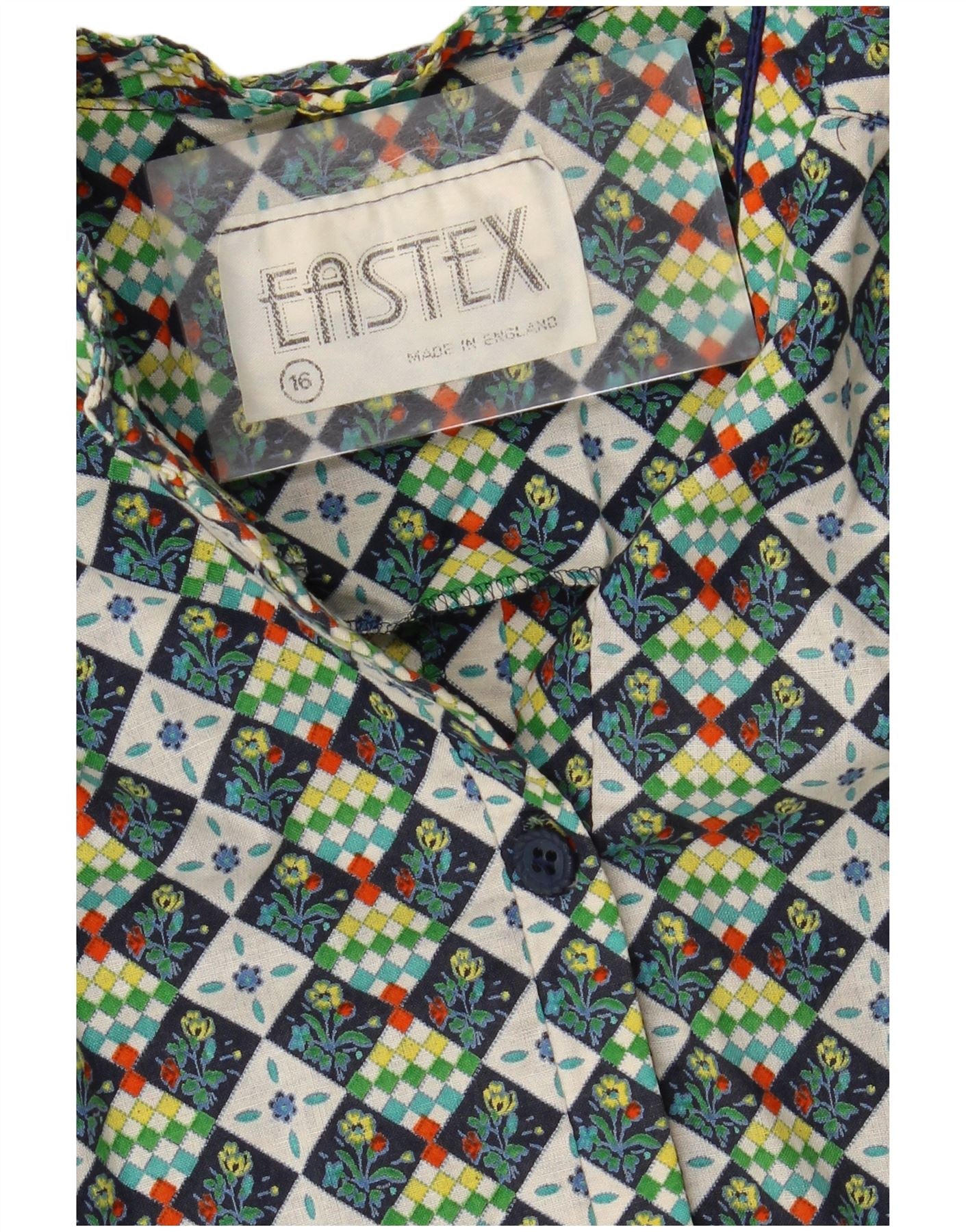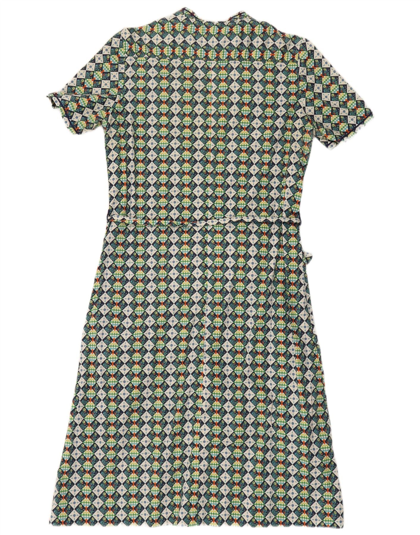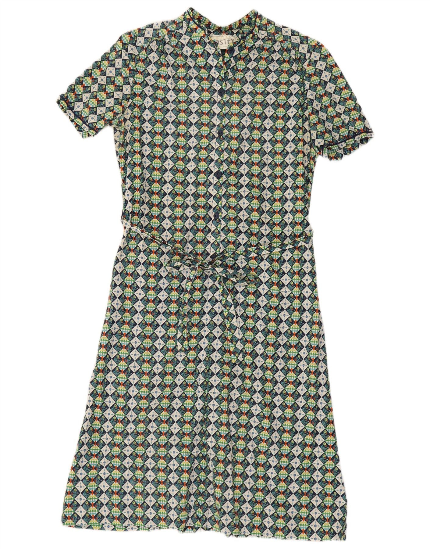 Vestido feminino EASTEX evasê Reino Unido 16 grande algodão geométrico verde