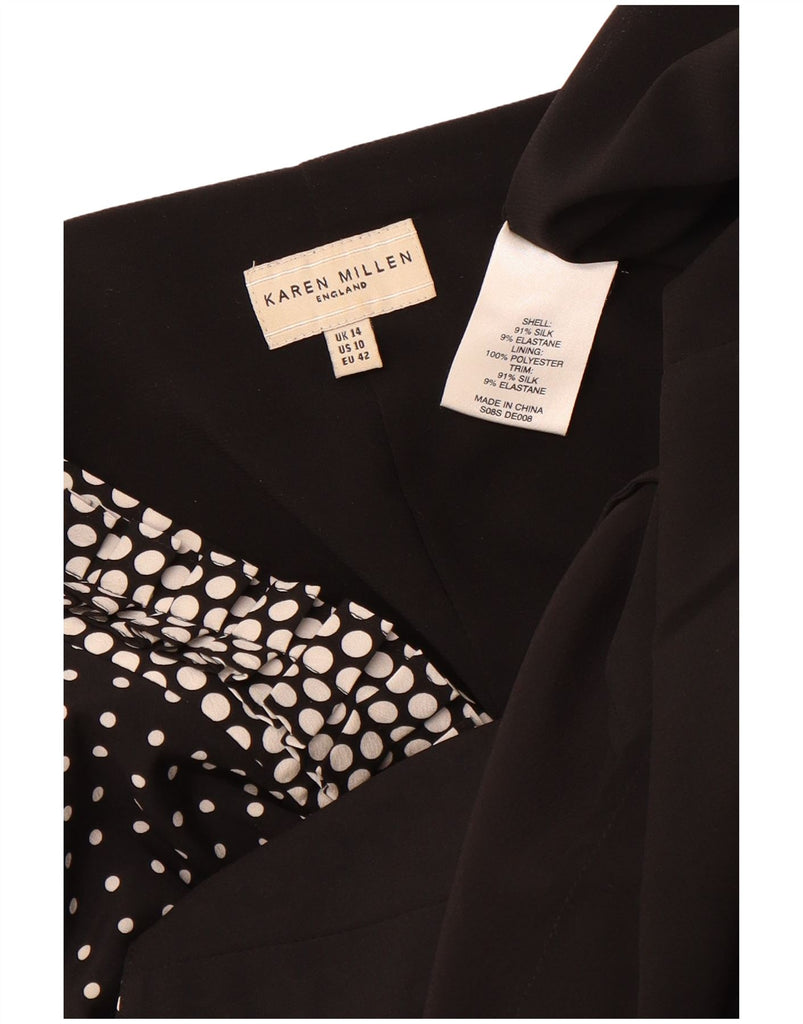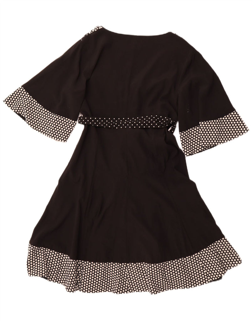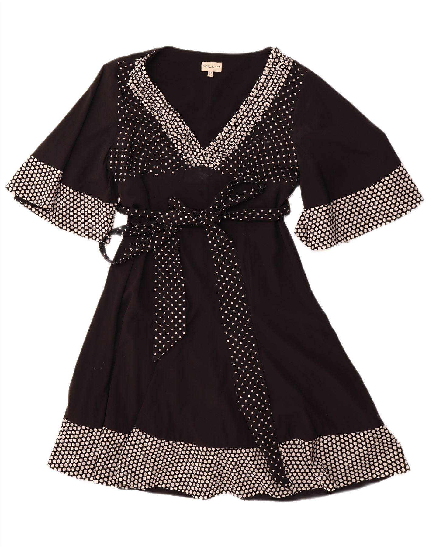 Vestido feminino KAREN MILLEN manga 3/4 linha A Reino Unido 14 grande bolinhas pretas