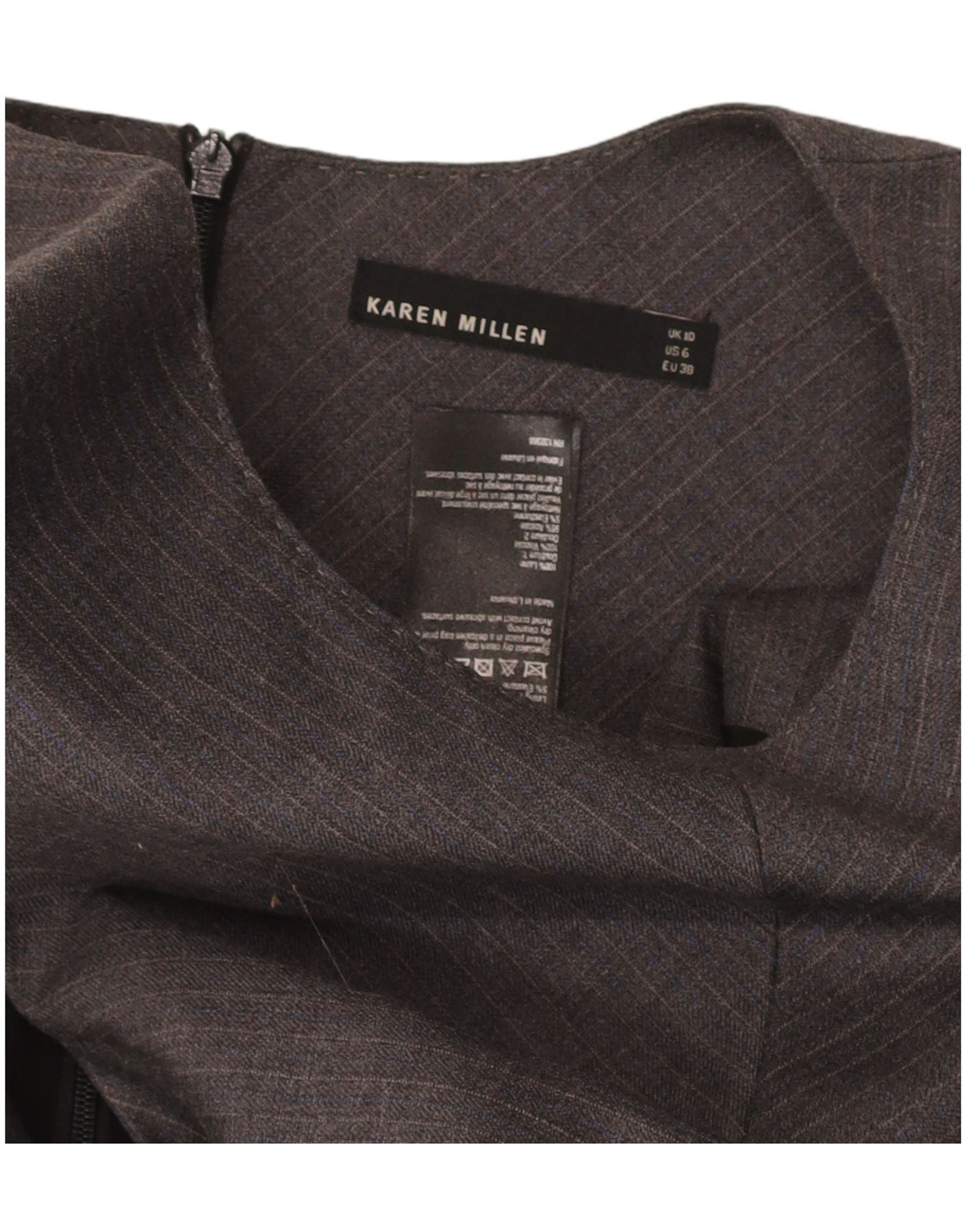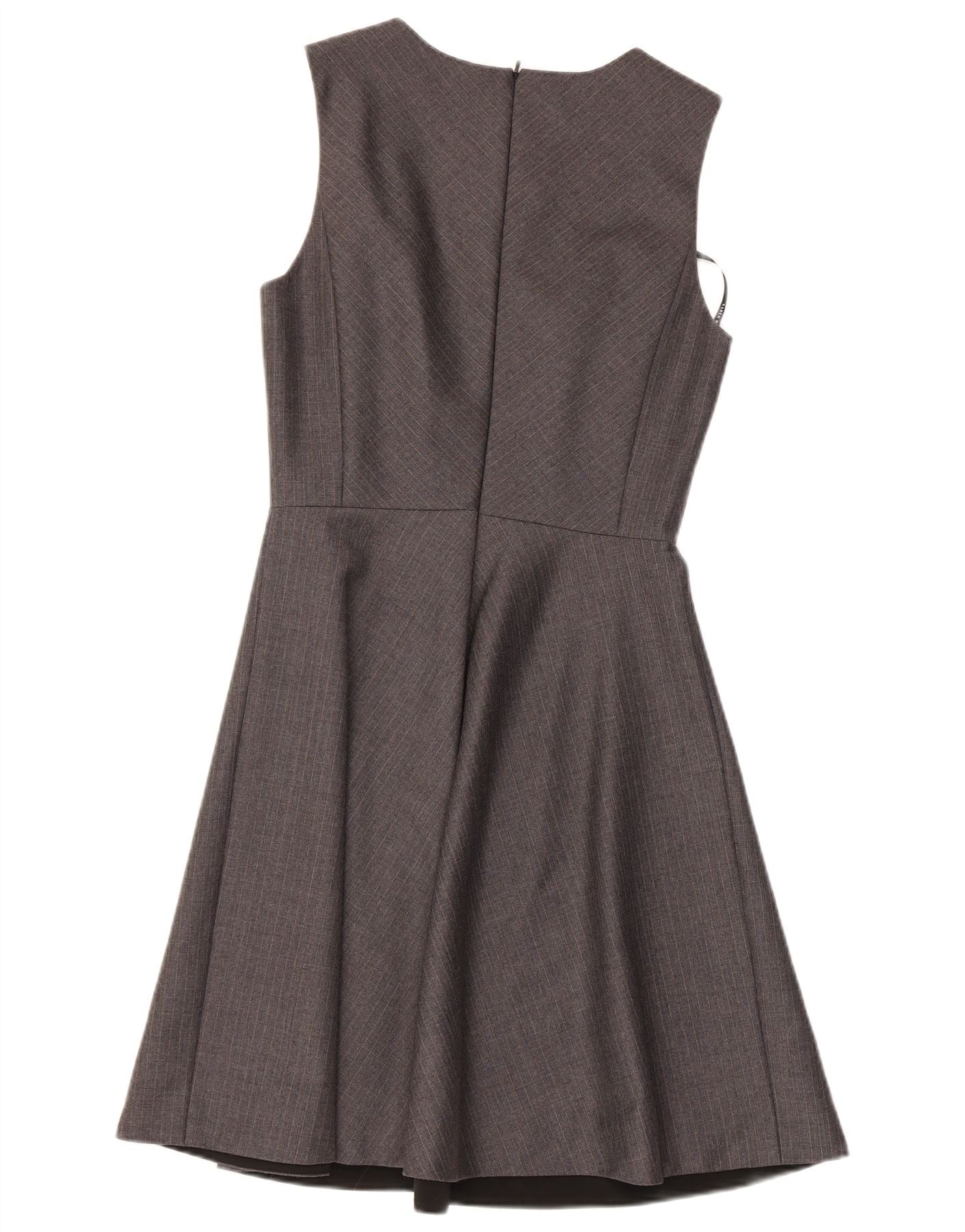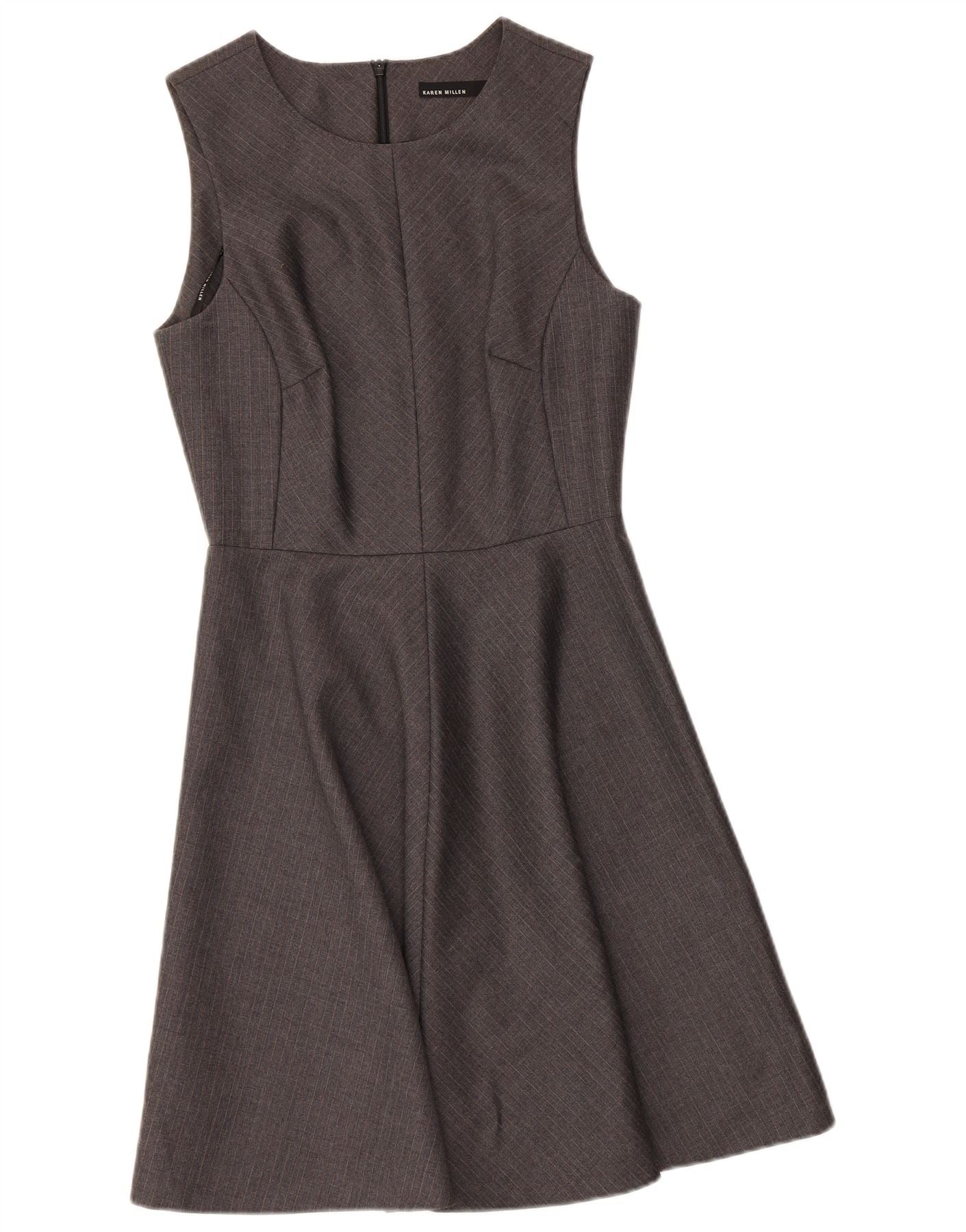 Vestido feminino KAREN MILLEN sem mangas evasê UK 10 listrado cinza pequeno