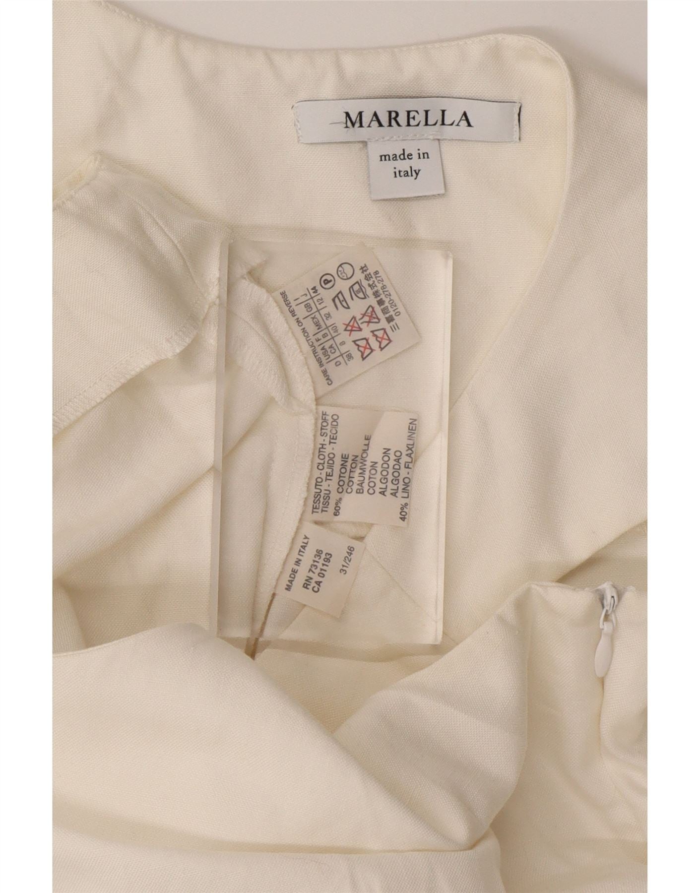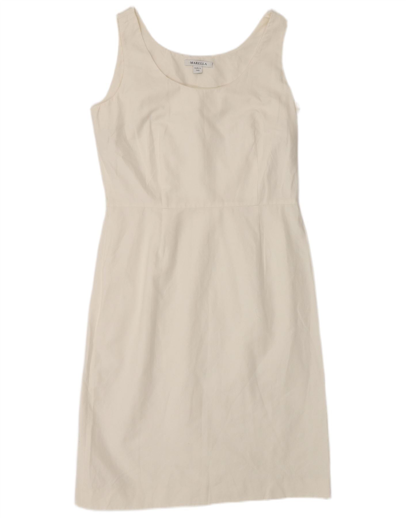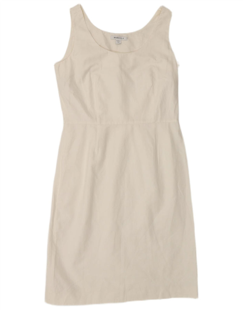 Vestido feminino MARELLA com bainha sem mangas Reino Unido 12 algodão branco médio