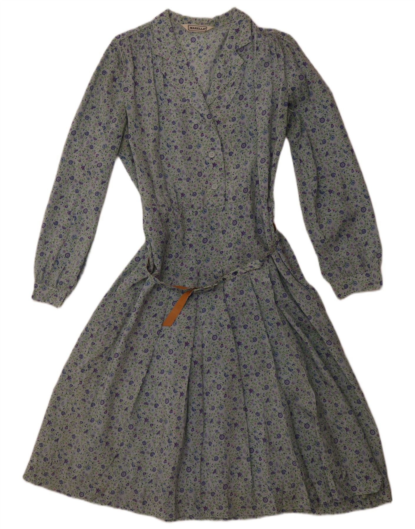 Vestido feminino MARELLA manga comprida evasê UK 14 grande azul floral