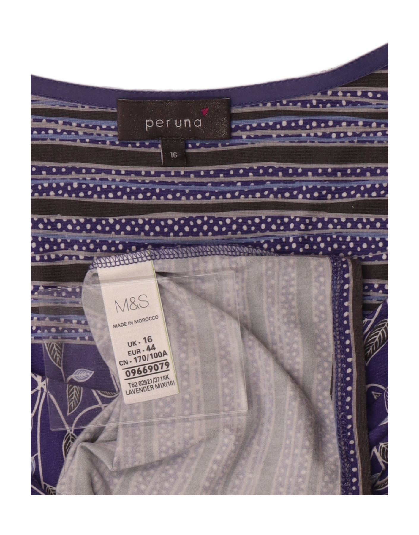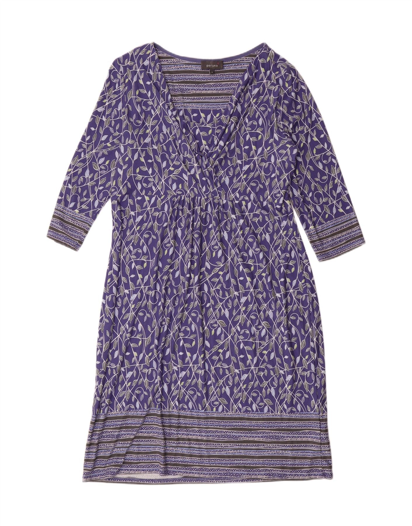 Vestido feminino PER UNA manga 3/4, viscose floral roxa grande Reino Unido 16