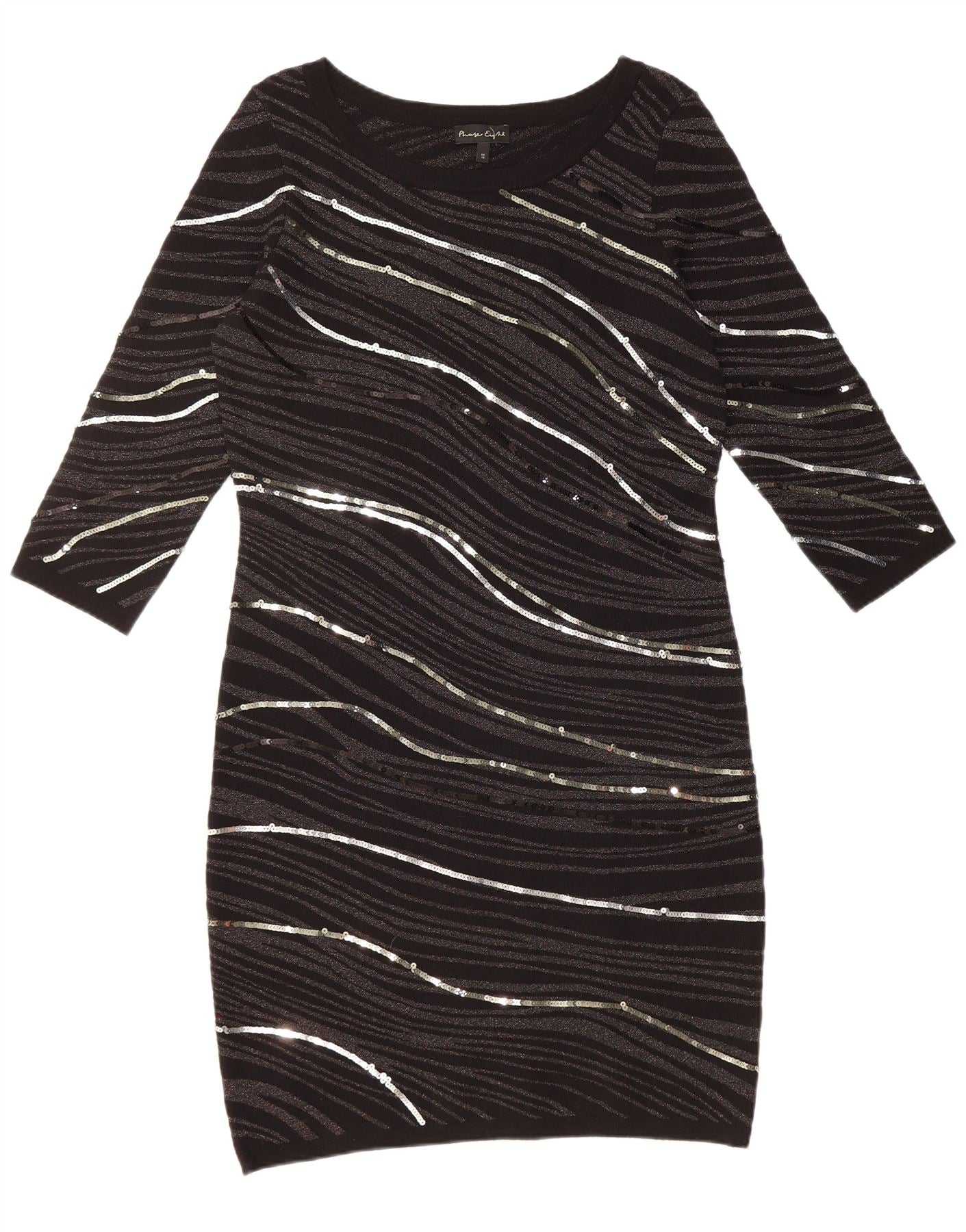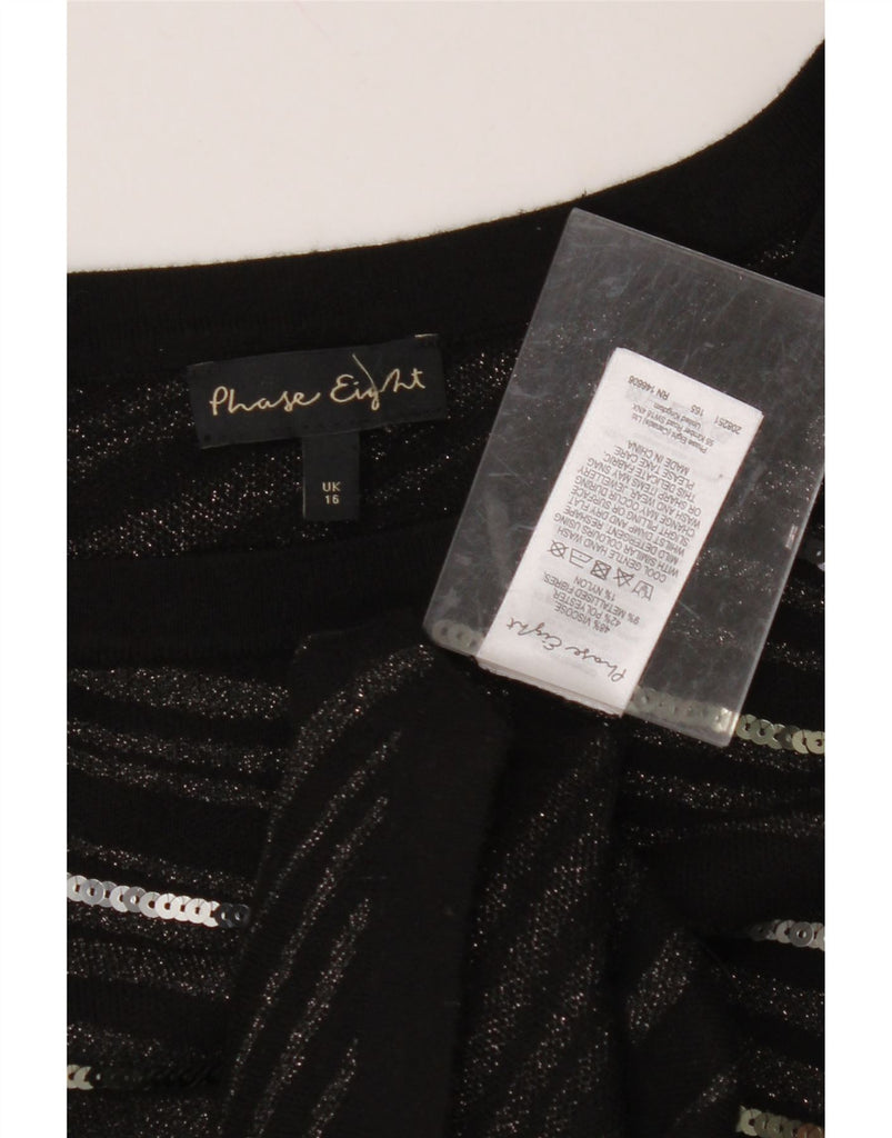 Vestido feminino PHASE EIGHT manga 3/4 com bainha UK 16 listrado preto grande