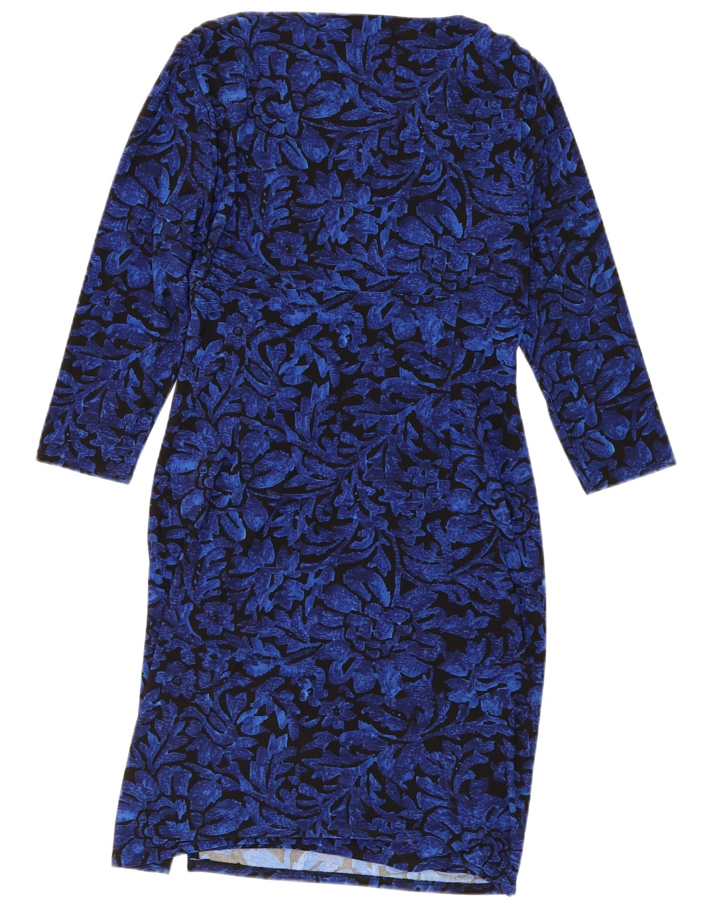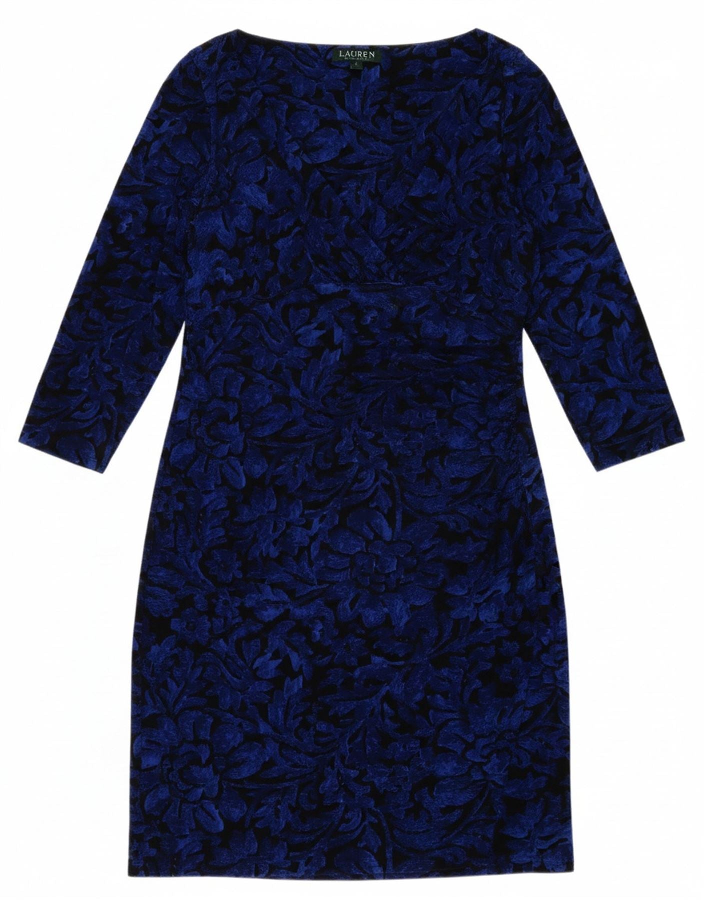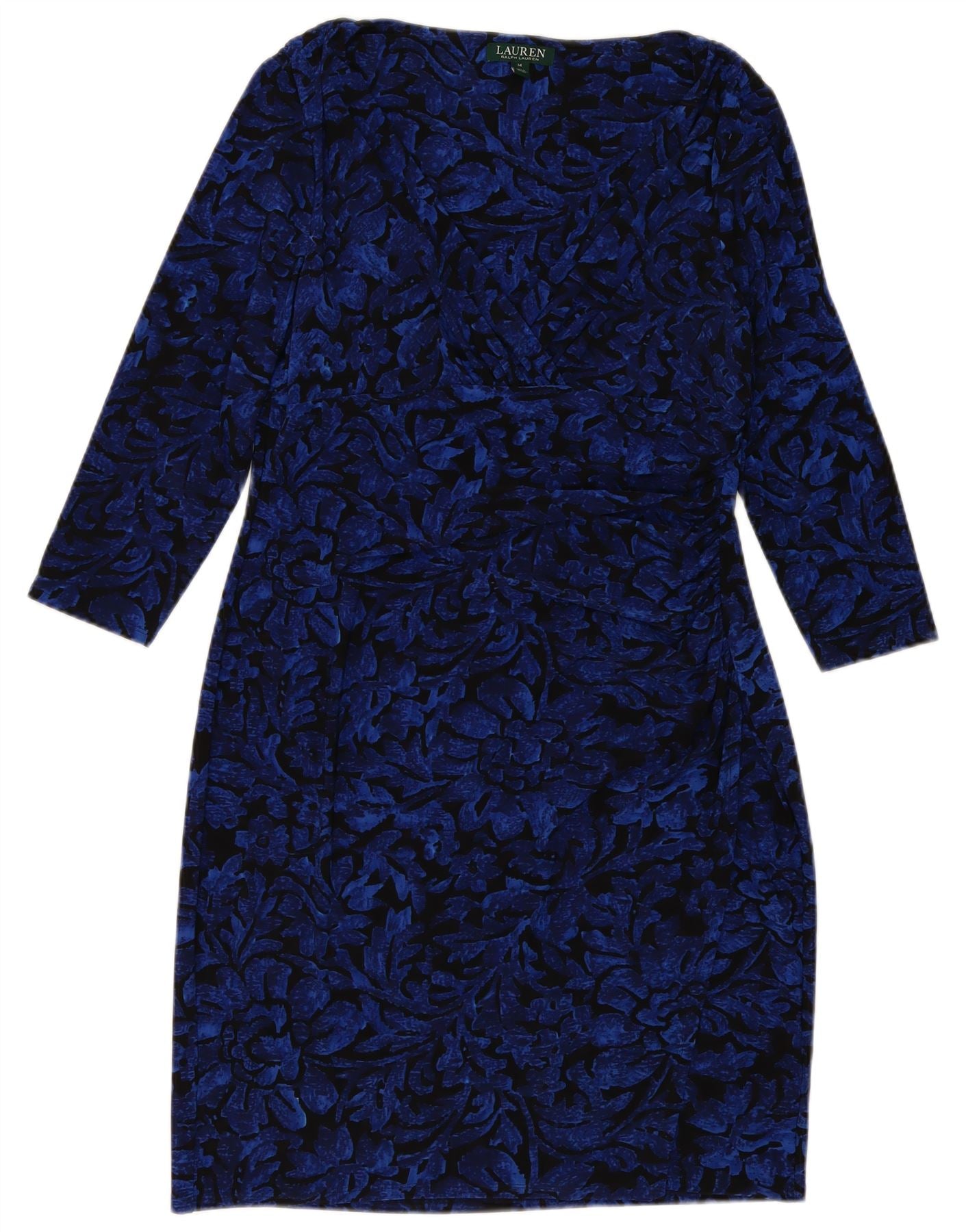 Vestido feminino RALPH LAUREN manga 3/4 com bainha US 14 XL azul floral poliéster