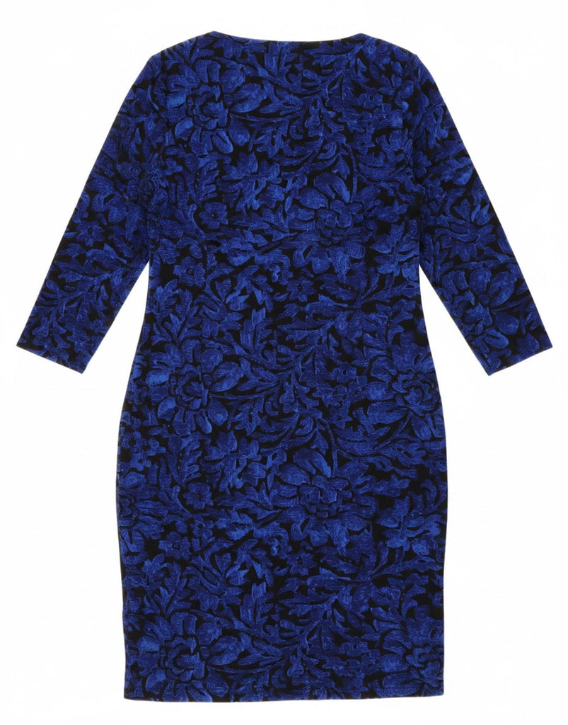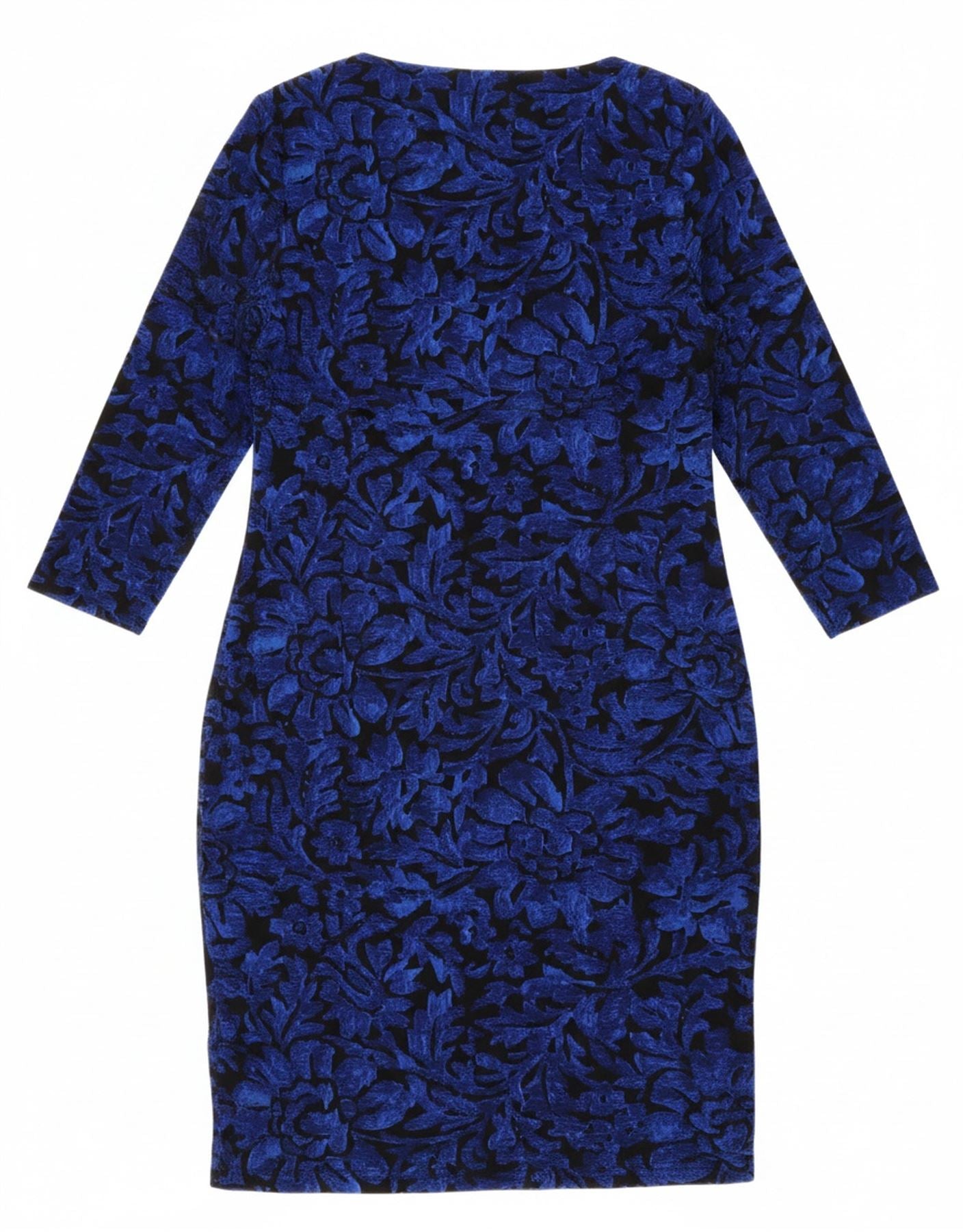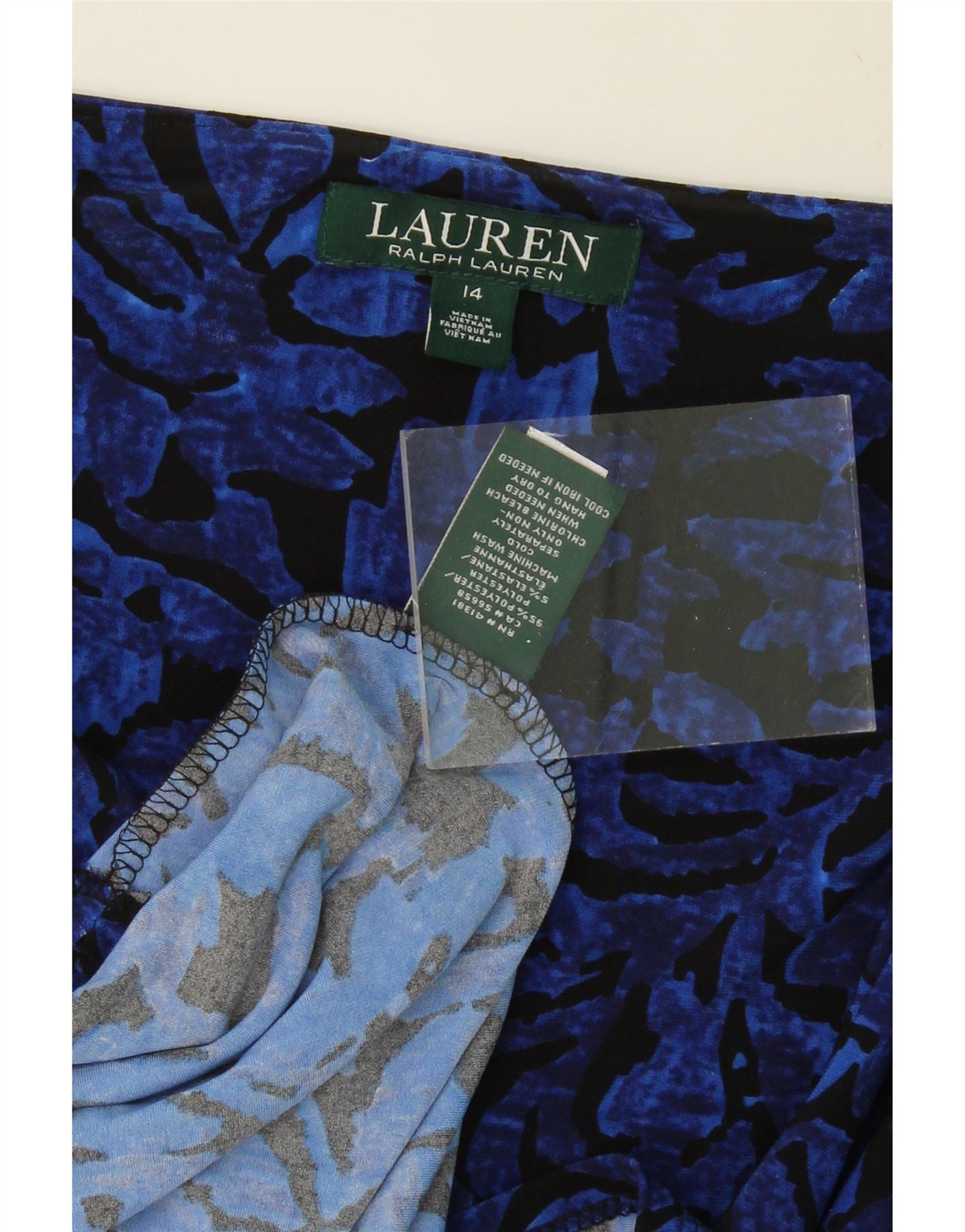 Vestido feminino RALPH LAUREN manga 3/4 com bainha US 14 XL azul floral poliéster