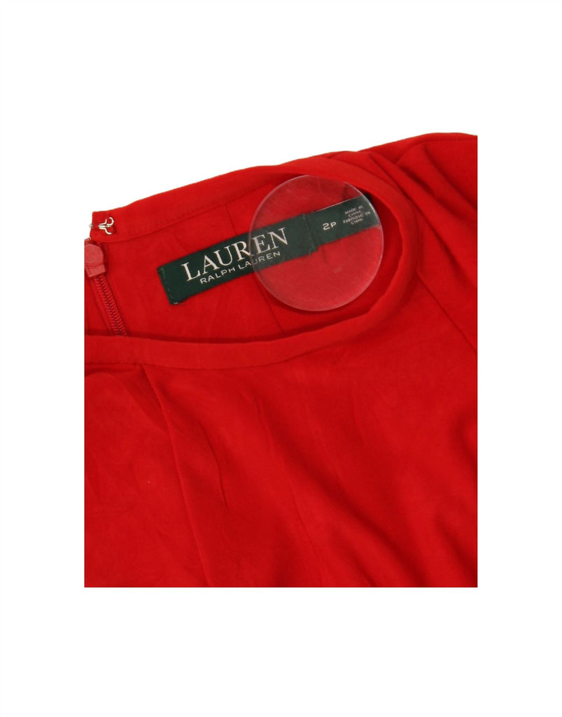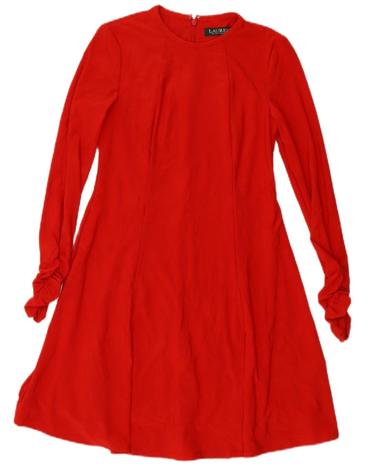 Vestido feminino RALPH LAUREN manga comprida evasê EUA 2 XS poliéster vermelho