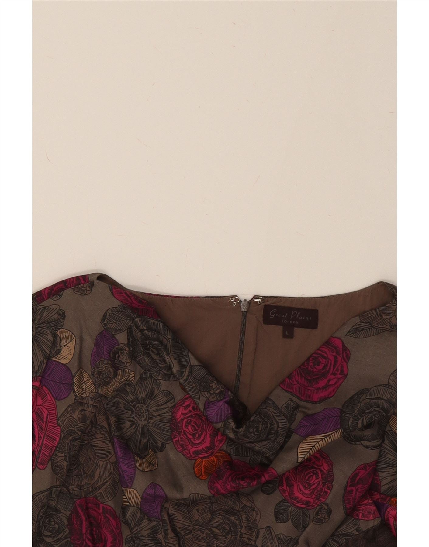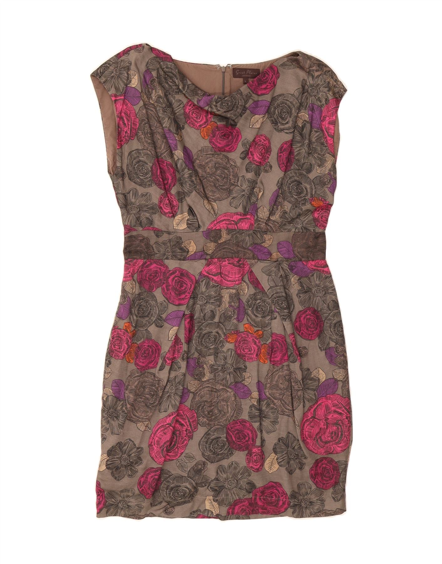 Vestido feminino sem mangas GREAT PLAINS Reino Unido 14 grande algodão floral cinza