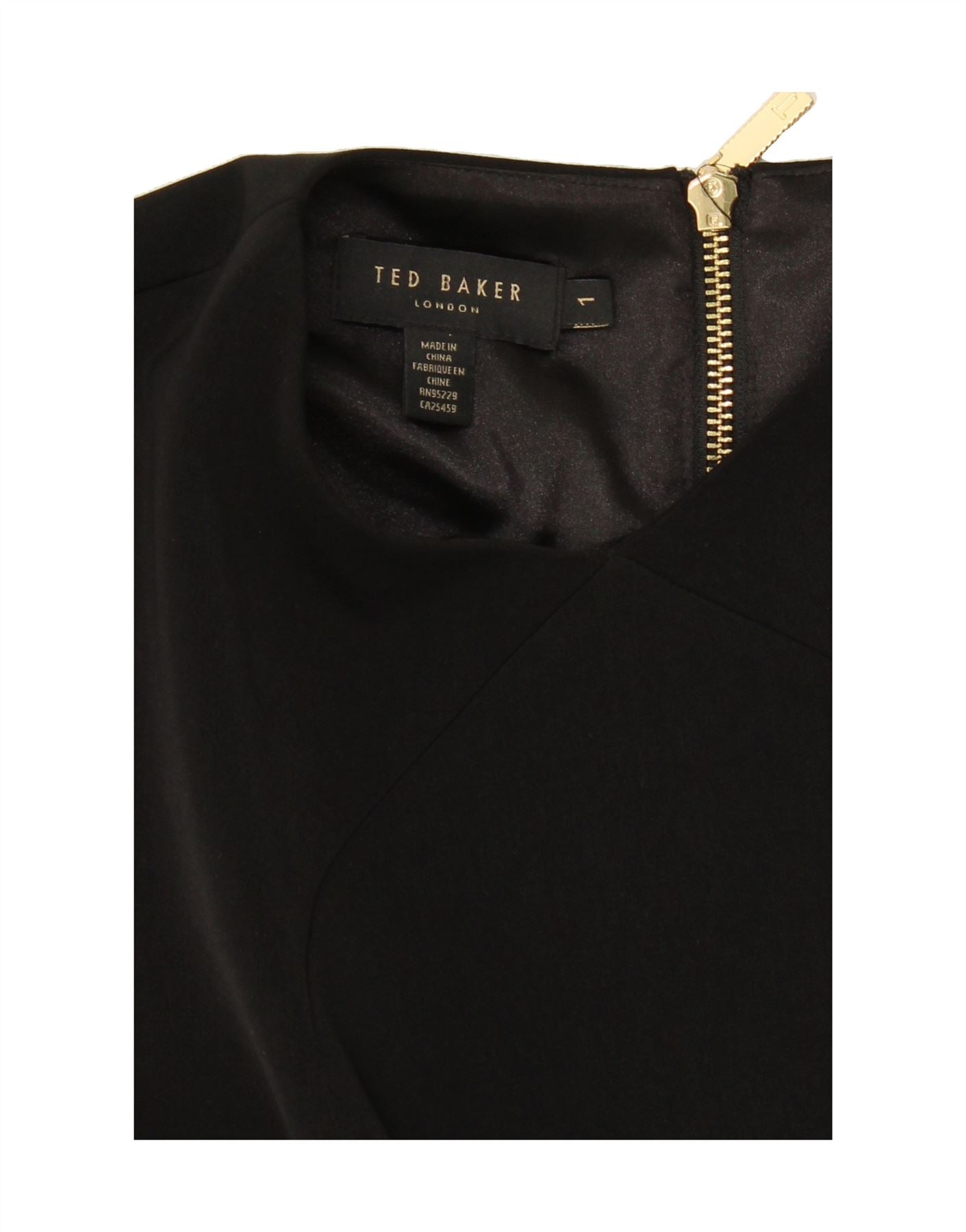 Vestido feminino TED BAKER sem mangas evasê tamanho 1 XS preto floral poliéster