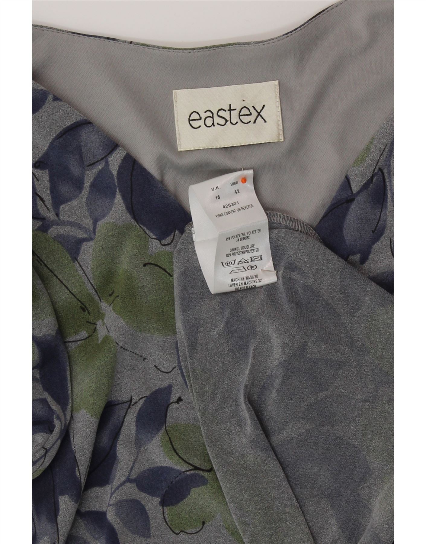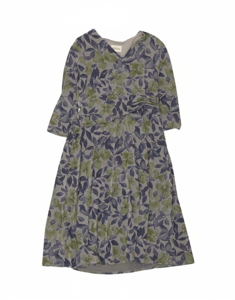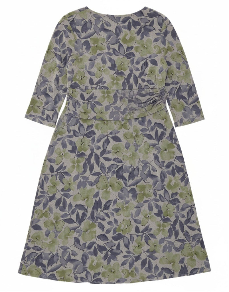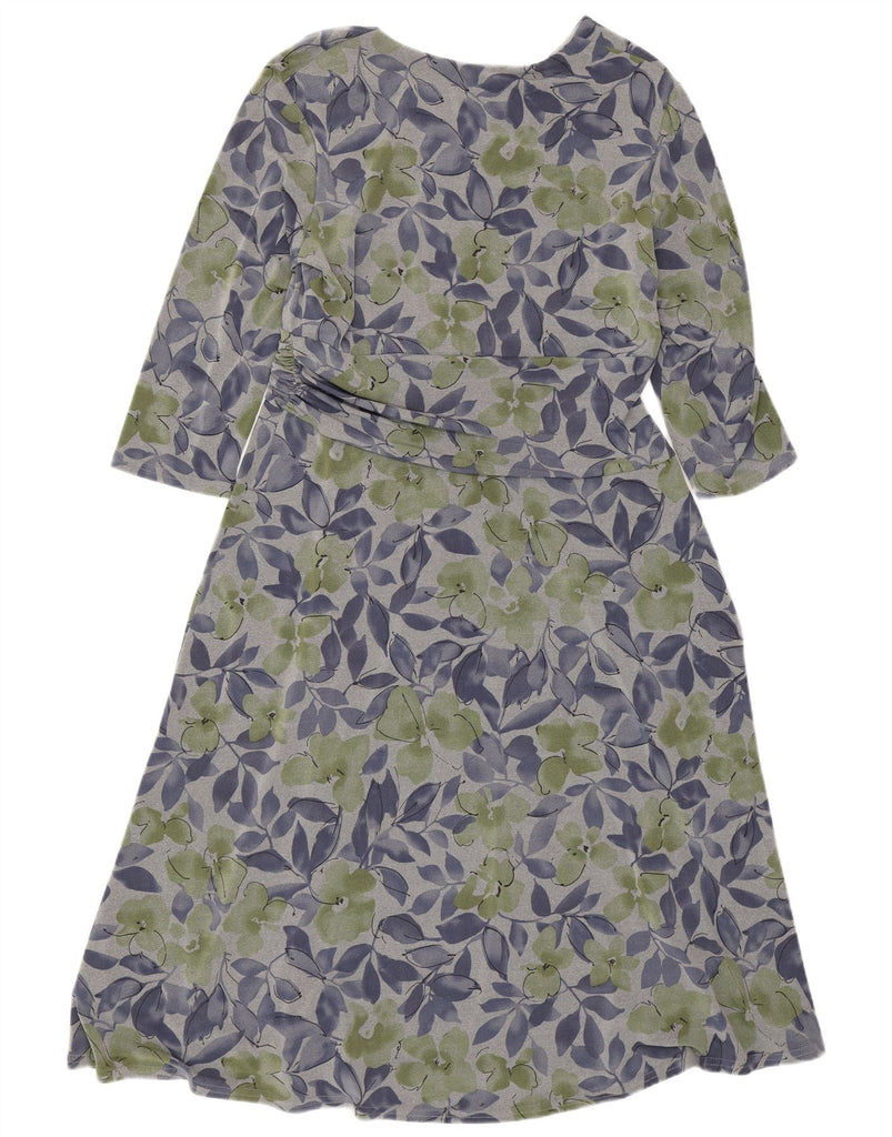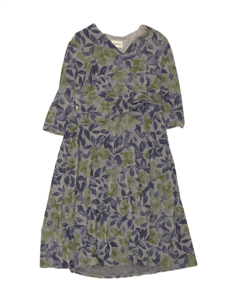 Vestido maxi feminino EASTEX manga 3/4 Reino Unido 16 grande poliéster cinza floral