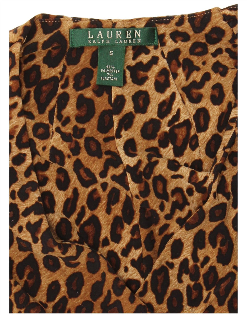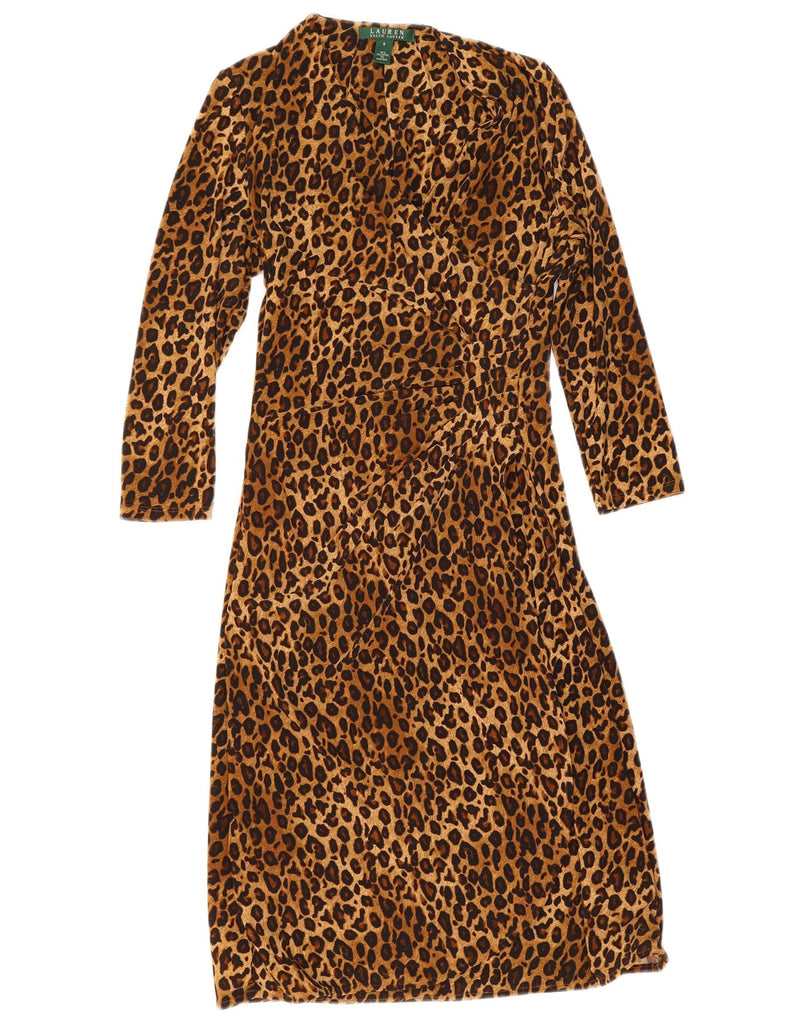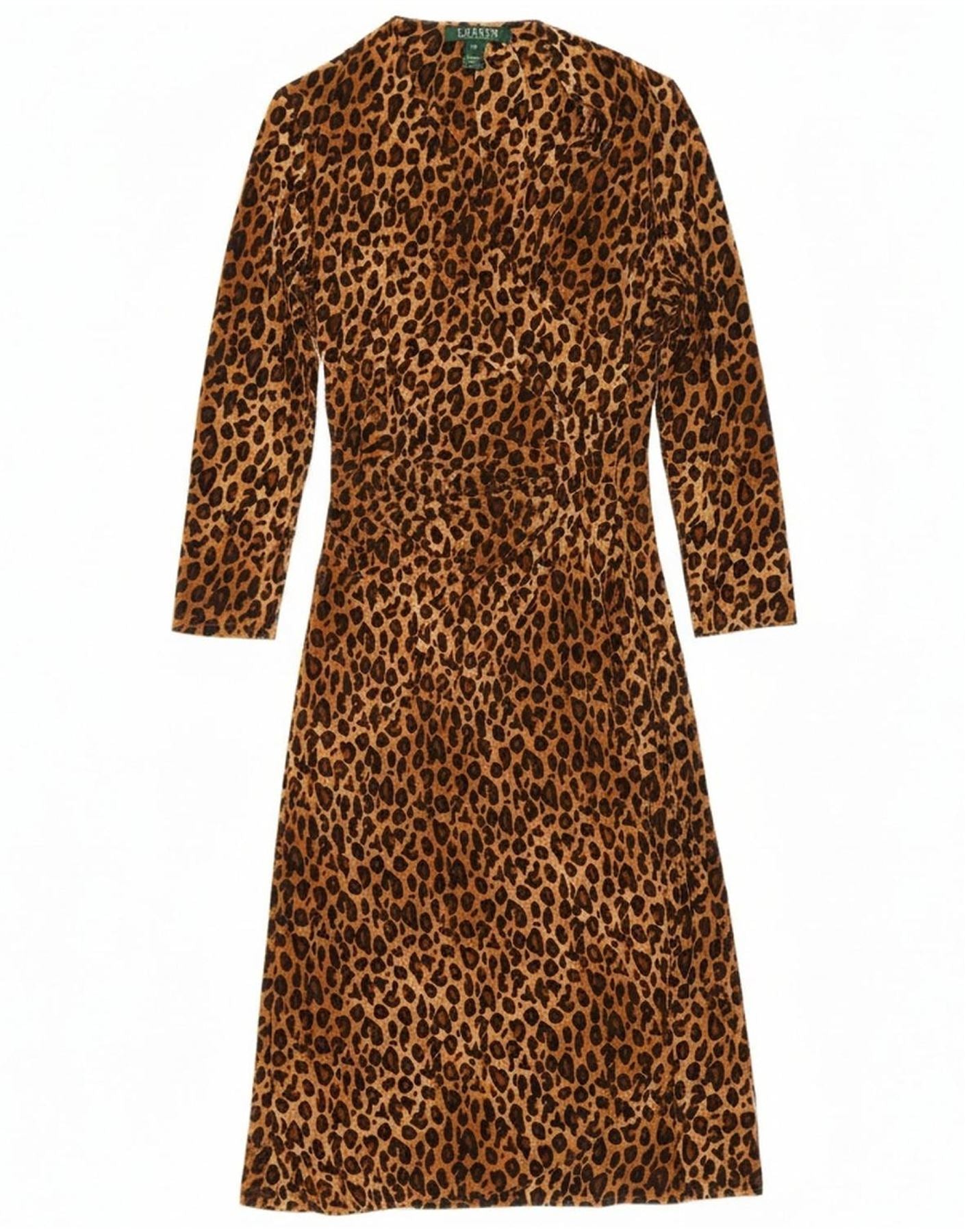 Vestido maxi feminino RALPH LAUREN manga 3/4 Reino Unido 10 pequeno marrom estampa animal