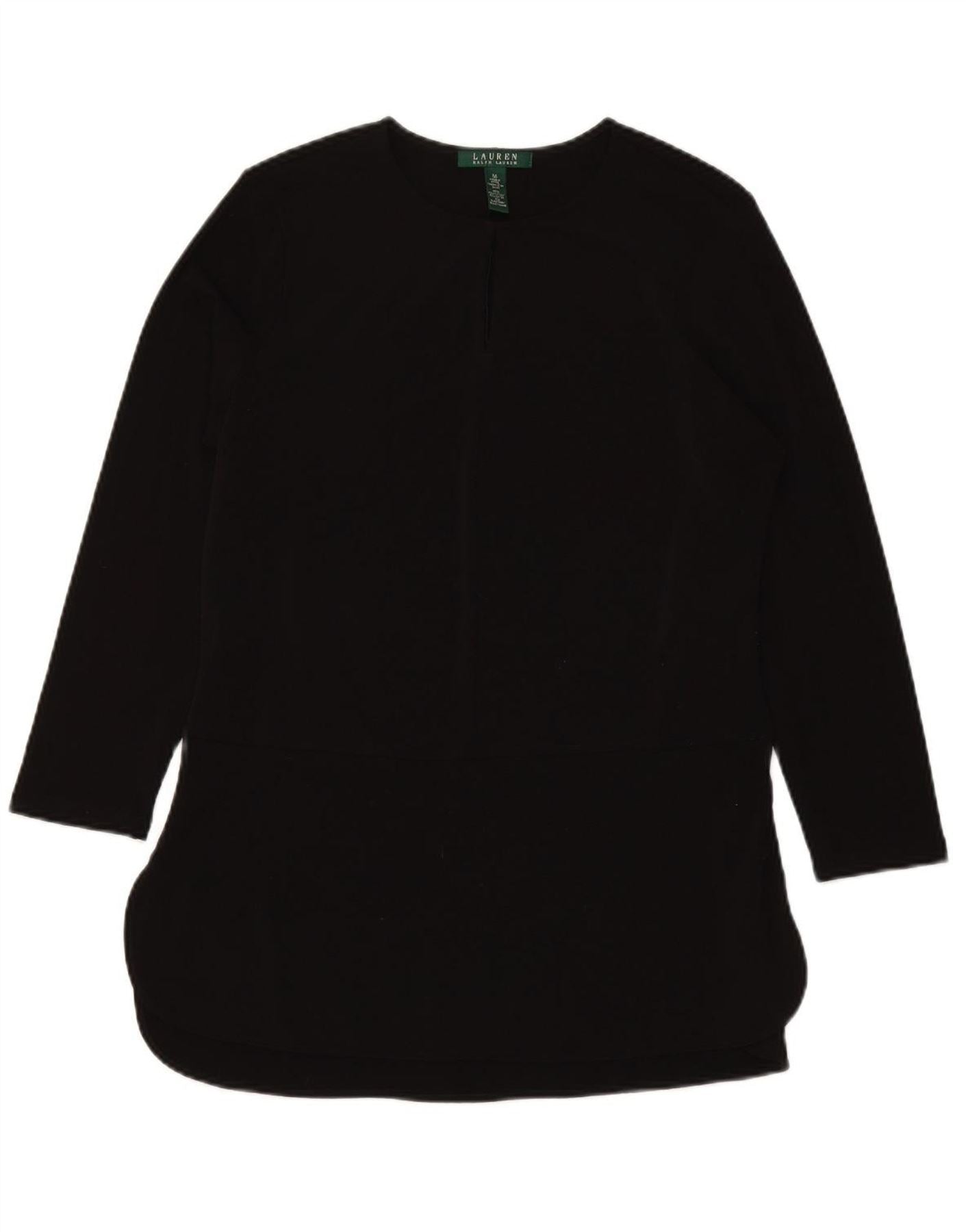 Vestido túnica feminino RALPH LAUREN Reino Unido 14 poliéster preto médio