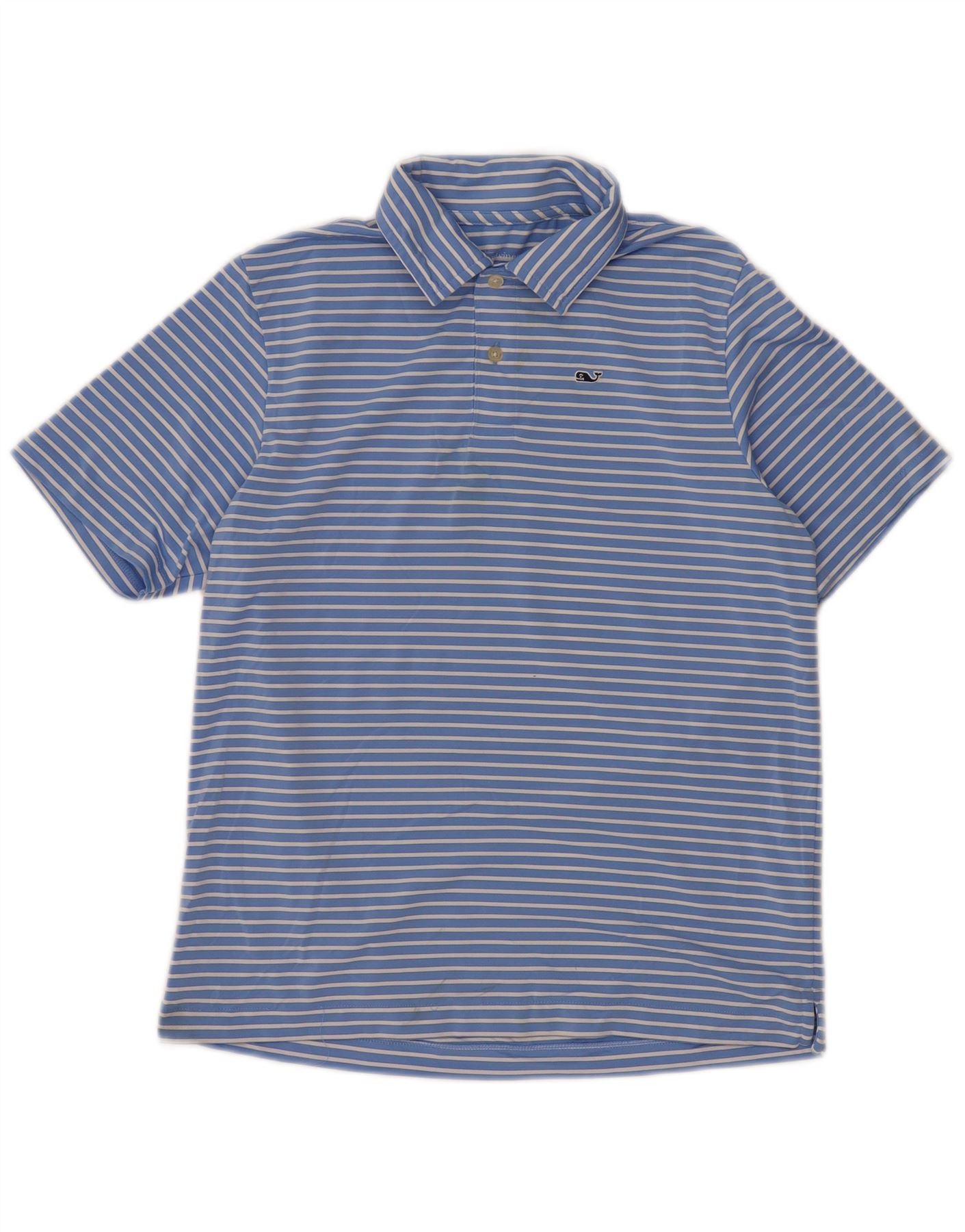 VINEYARD VINES Camisa polo masculina 15-16 anos grande poliéster listrado azul