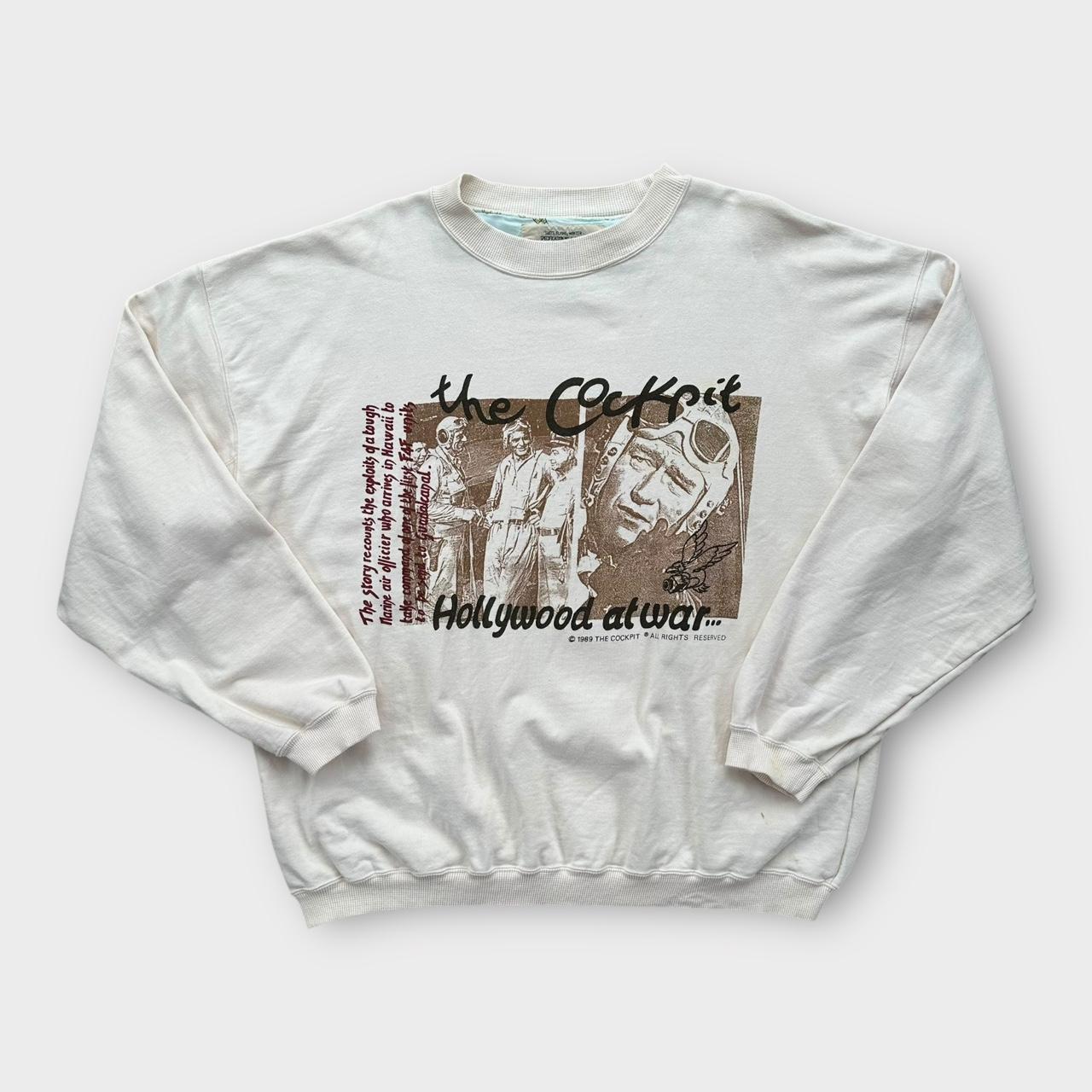 Moletom vintage com estampa gráfica Avirex dos anos 90 em bege com estampa no peito
