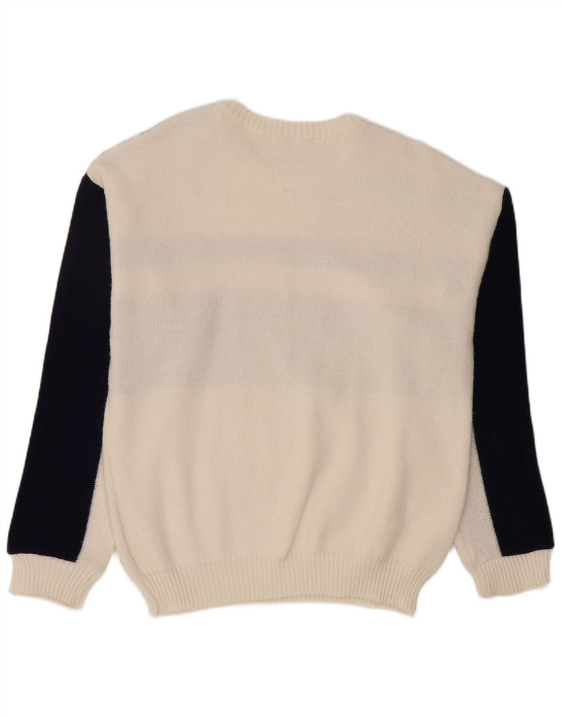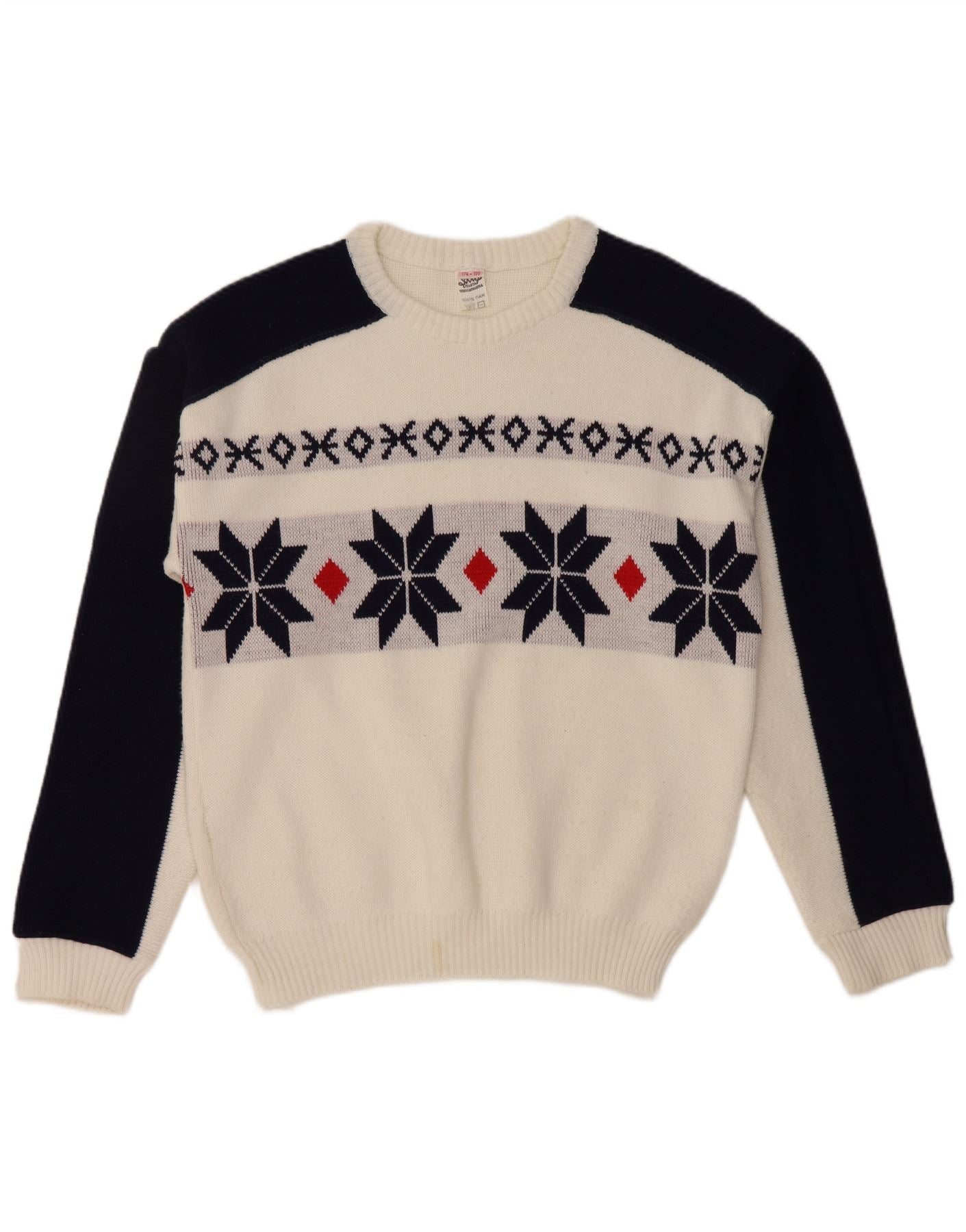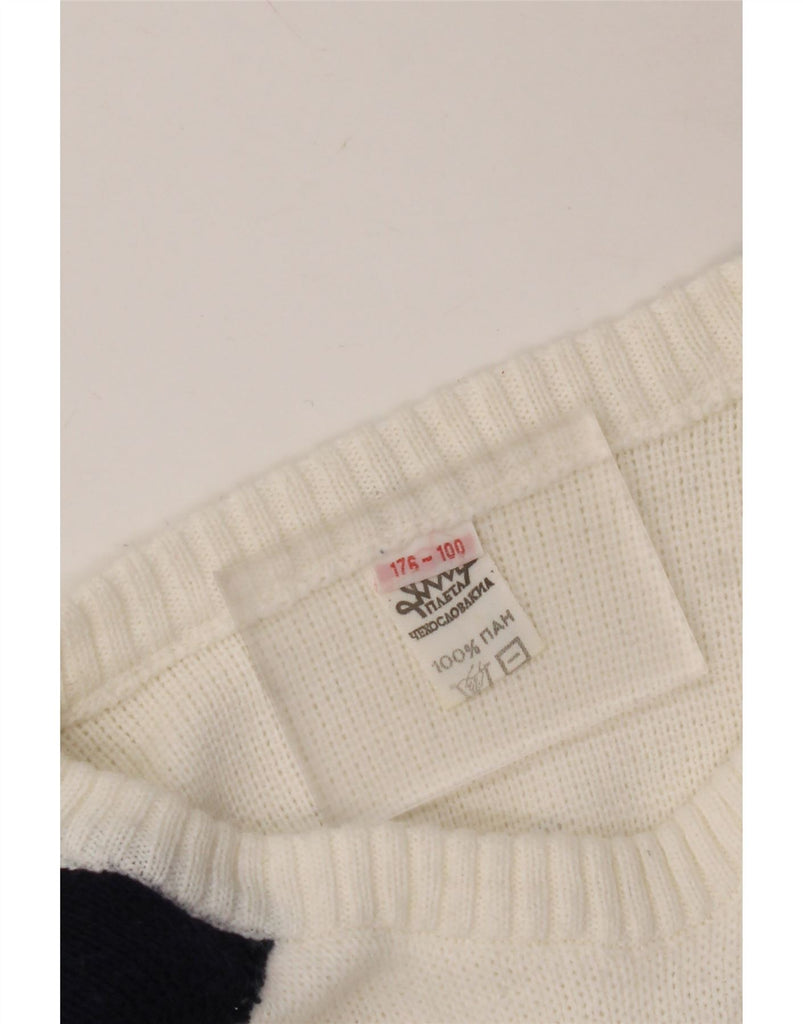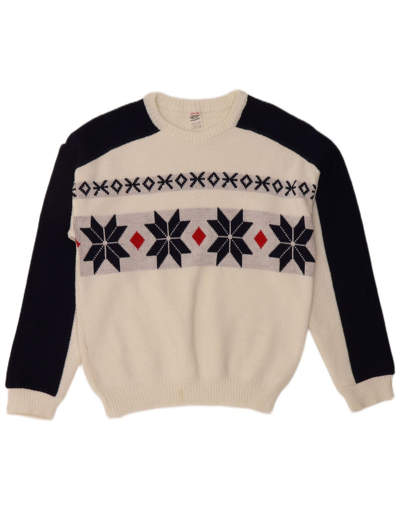 VINTAGE Boys Crew Neck Jumper Sweater 15-16 Years White Fair Isle Wool