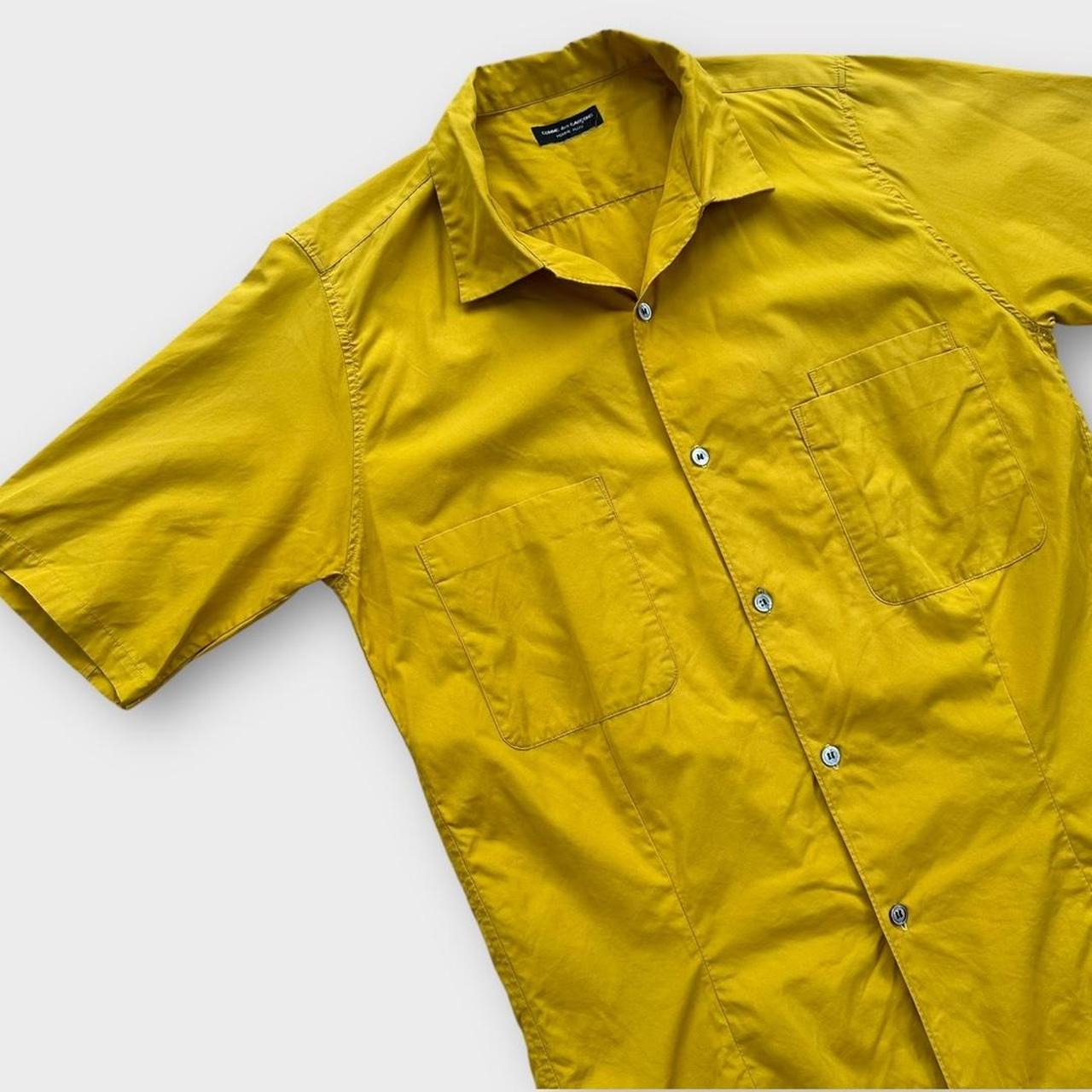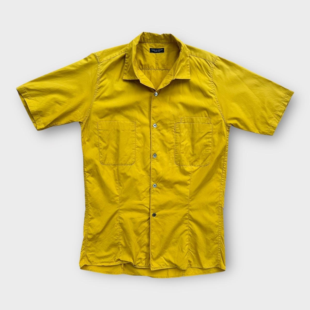 Camisa Comme Des Garçons vintage de manga curta com botões em amarelo e bolsos na frente